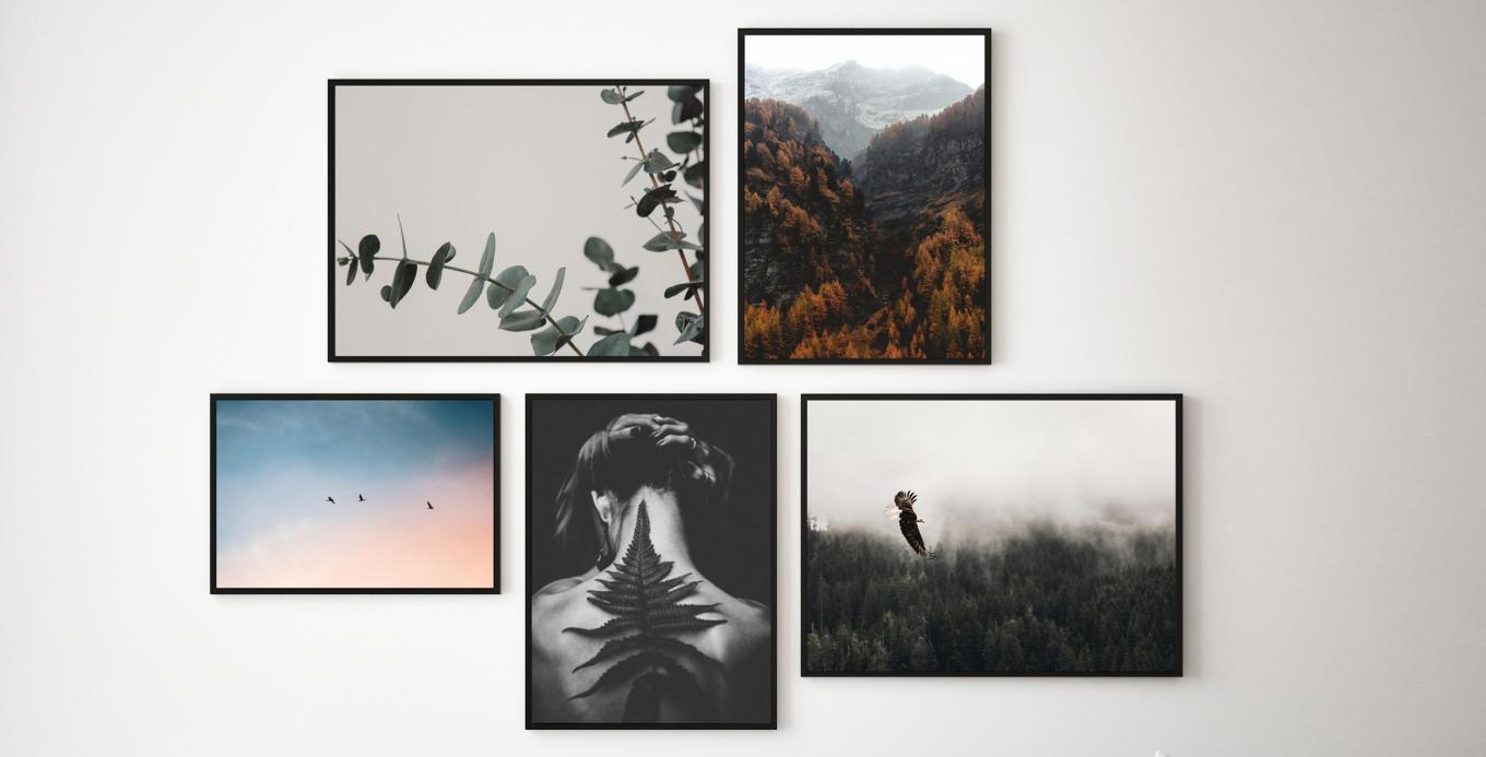 Obrazová stěna znamená více obrazů, a tím i více rámů a motivů. To znamená, že jak rámy, tak samotné motivy ovlivňují výsledný vzhled stěny. Zamysli se tedy nad tím, jaký dojem chceš, aby celková kompozice působila.