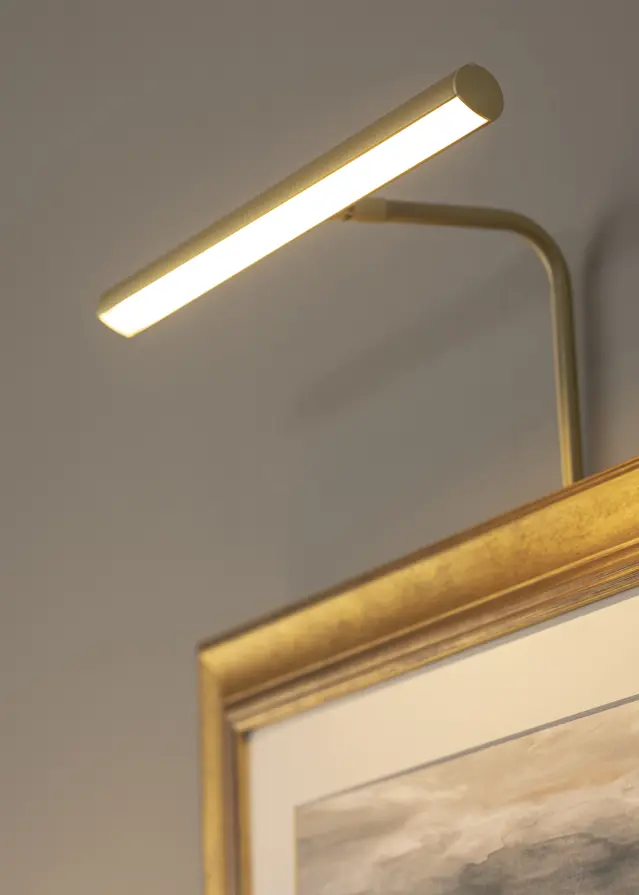 Vyberte si některé ze svých nejoblíbenějších obrazů na stěně a doplňte rámy o lampy v neutrálních nebo odpovídajících barvách. Nejlépe to vypadá, když zvolíte například bílé osvětlení k bílému rámu a tak dále. Uvědomte si, že různé lampy na obrazy a jejich držáky se hodí pro různé rozměry rámových lišt.