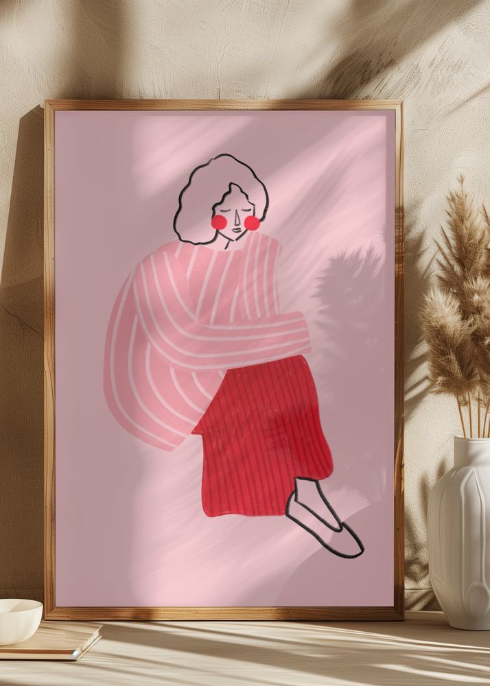 Pink and Red Line Lady Plakát