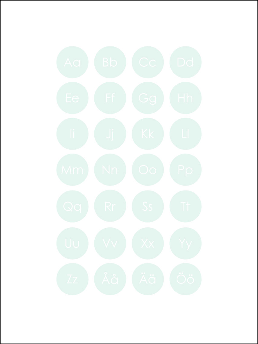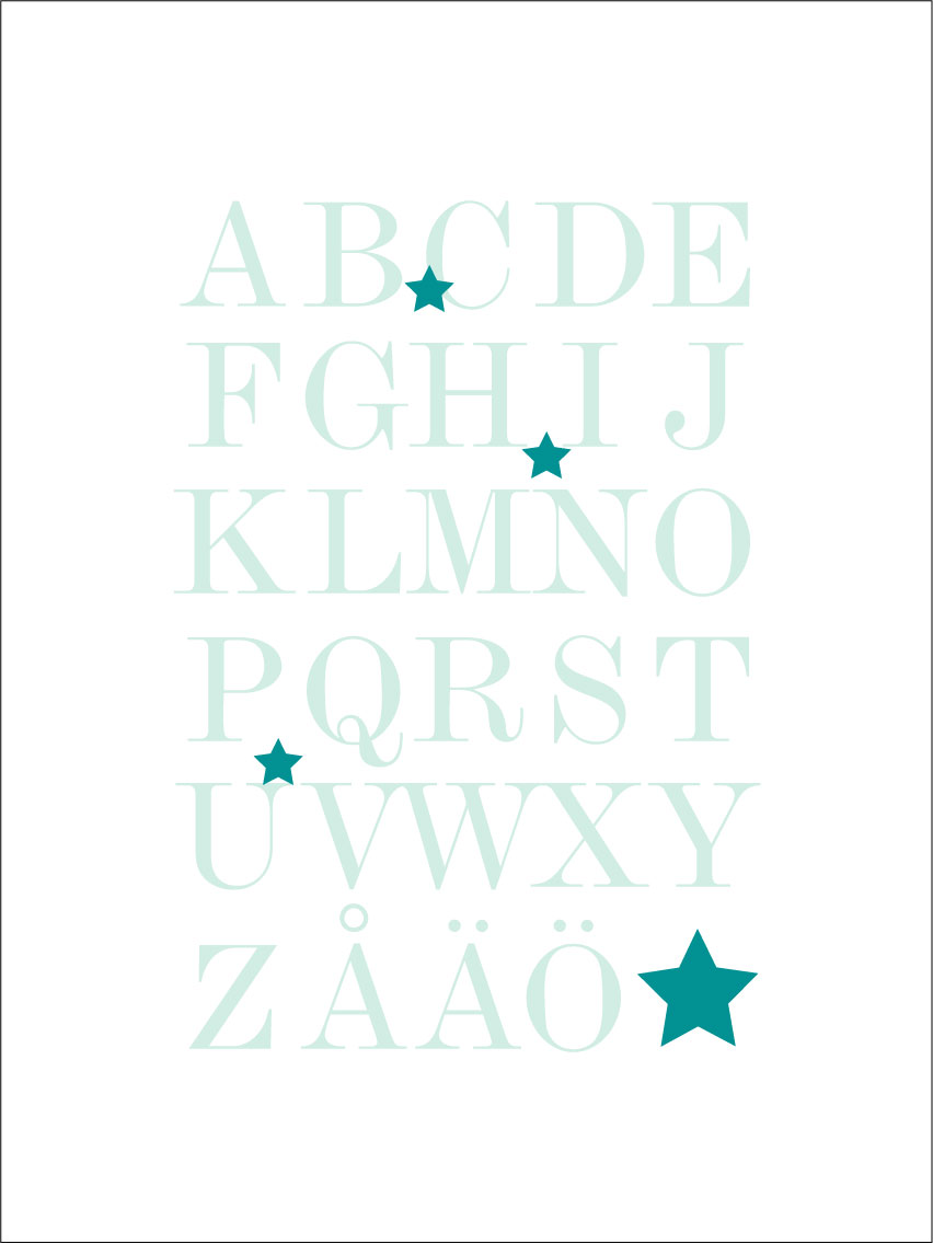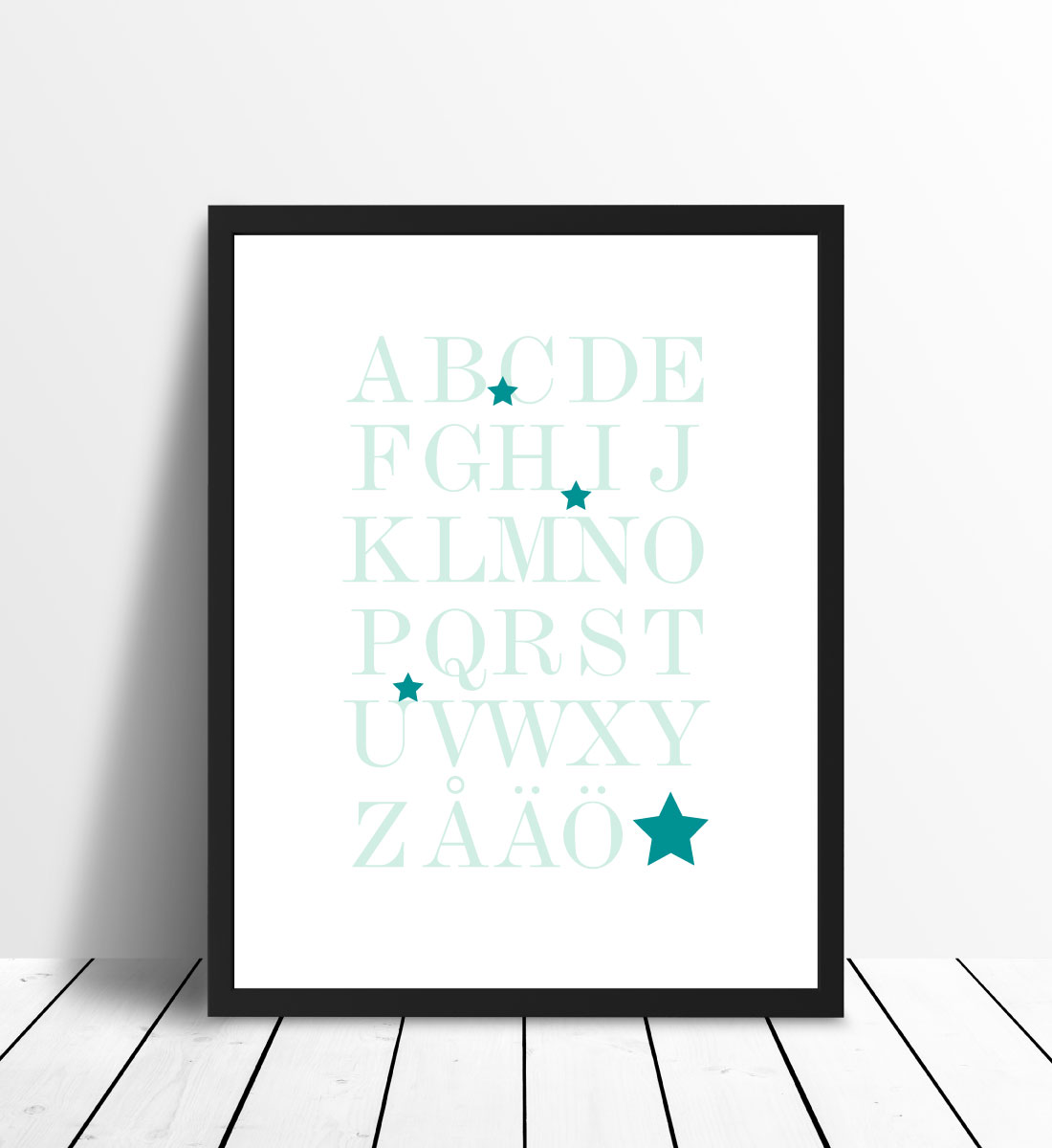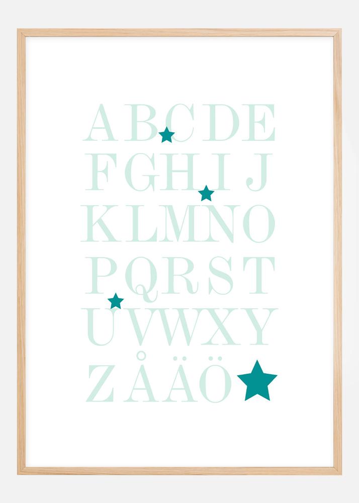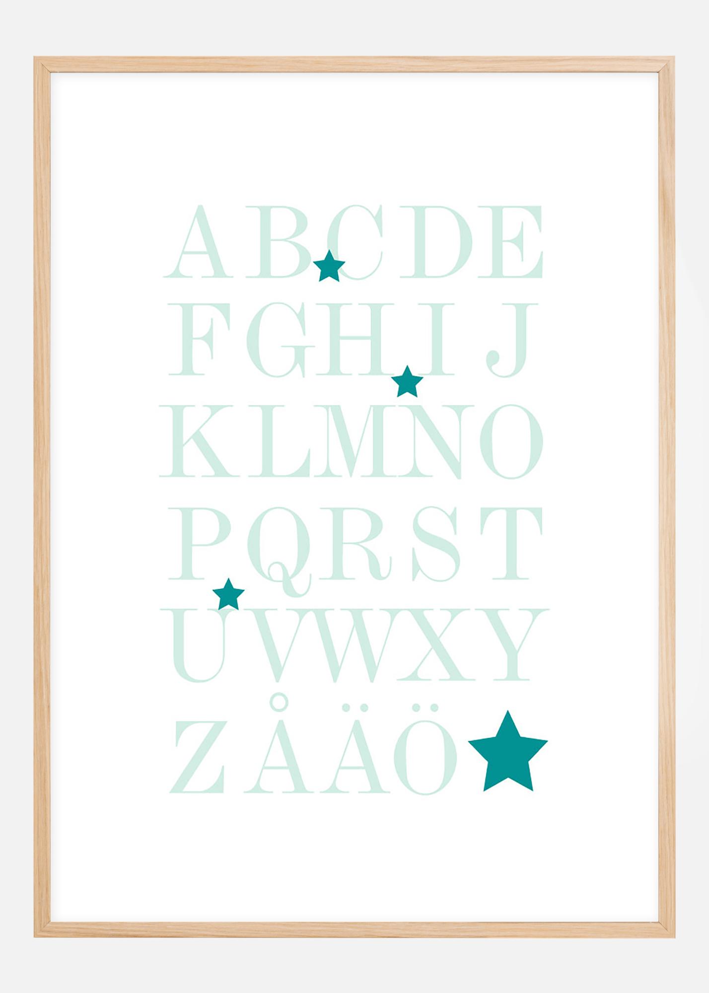 Grafický tisk s celou abecedou, A-Ö, v zeleno-tyrkysových odstínech moře. Didaktický motiv se dobře hodí do dětského pokoje na procvičování abecedy, ale i na jiné stěny v domě. Elegantní výraz zajišťuje, že se plakát hodí do všech stylů interiéru a typů domů. Kombinujte ho s dalšími obrazy na zeď na téma nebo ozdobte stěnu spolu s plakátem s čísly 1-10.