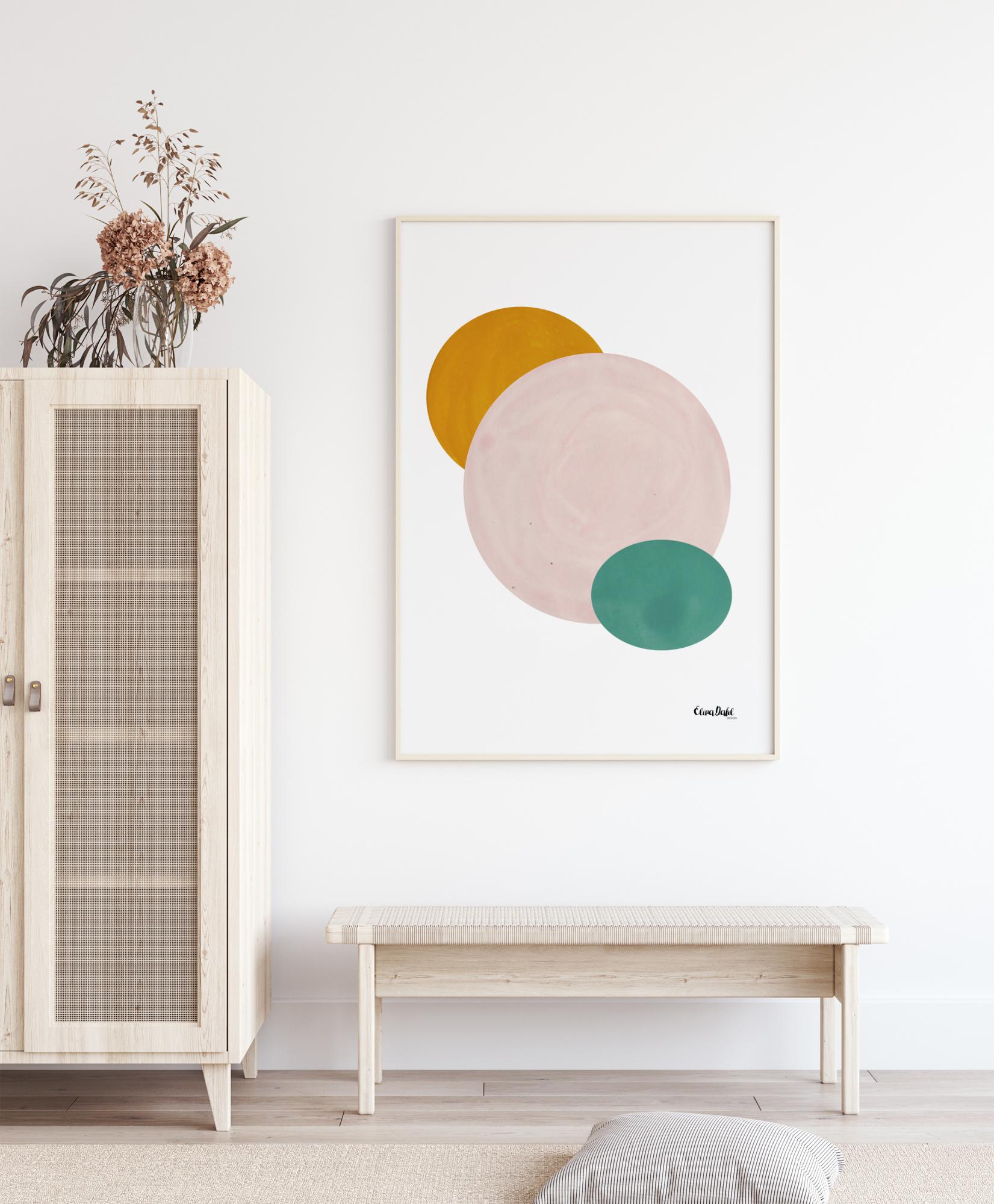 Krásně nekomplikovaný abstraktní plakát s pastelově zbarvenými grafickými tvary, vytvořený designérkou Elinou Dahl. Elegantní obraz, který se skvěle hodí například do minimalistického, moderního nebo retro inspirujícího interiéru. Tento plakát vypadá fantasticky spolu s dalšími plakáty Eliny Dahl ve stejném stylu.
