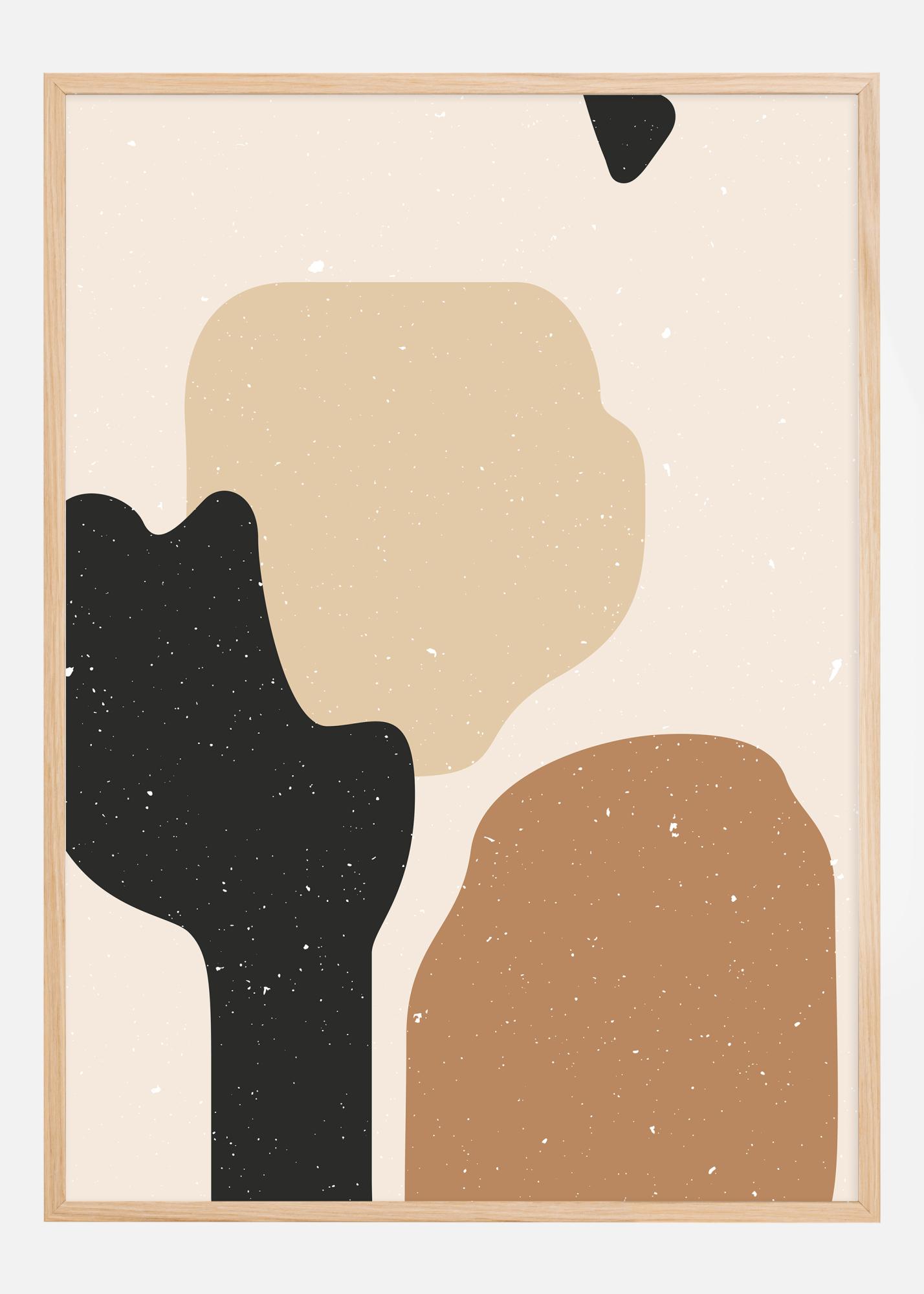 Tento abstraktní plakát, se svými elegantními organickými tvary a teplou, zemitou paletou barev, dodává klidný a moderní prvek do každé místnosti. Motiv, charakterizovaný svými černými a béžovými tóny s akcenty terakoty, je stejně tajemný jako přívětivý, což vybízí diváka k interpretaci vlastního významu v jednoduchých, ale silných tvarech.