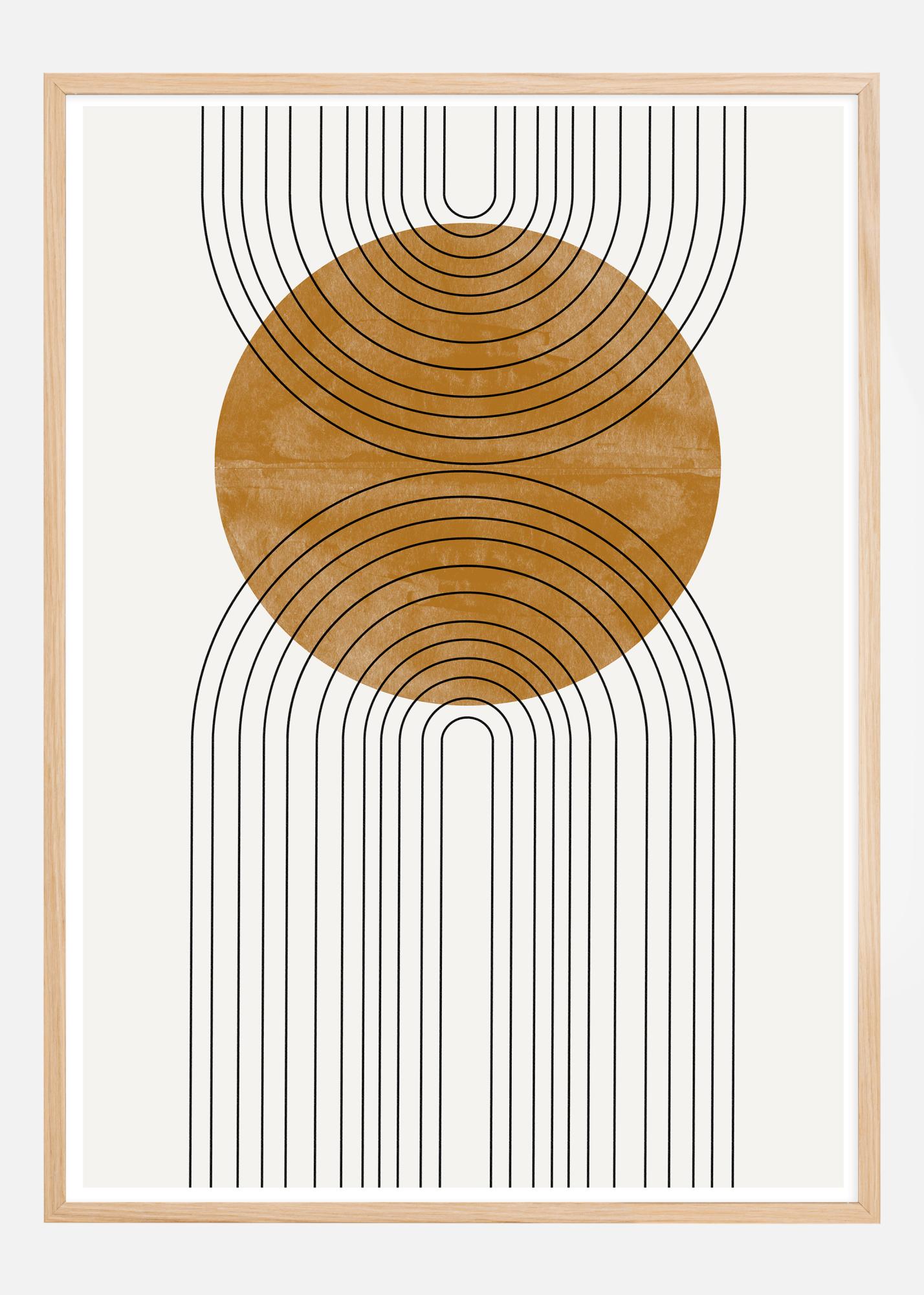 Tento plakát zachycuje výjimečnou směsici geometrie a přírody se svými plynulými liniemi, které tvoří dva překrývající se polokruhy. Neobvyklý design vytváří pocit pohybu a rovnováhy, zatímco teplé nahnědlé tóny dodávají pocit zemité stability. Jeho čisté a tekoucí černé linie krásně kontrastují s světlým pozadím a sytou nahnědlou barvou, vytvářejíc obraz, který je zároveň moderní a nadčasový.