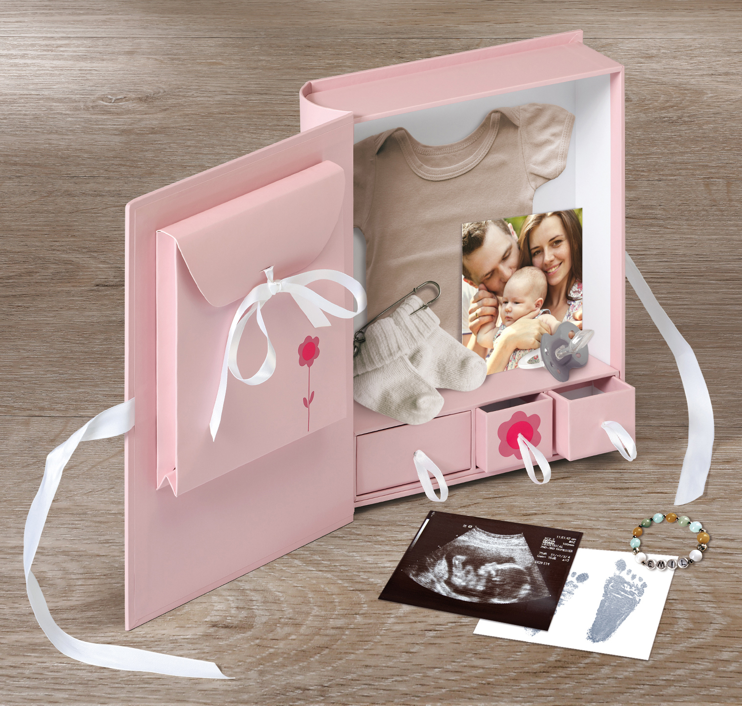 Tato pamětní krabička je jak praktická, tak roztomilá. Stane se skvělým dárkem pro nové rodiče – a samozřejmě si tuto pěknou úložnou krabičku můžete dopřát i sami! Je ideální pro ukládání dudlíků, malého oblečení, blahopřejných karet, fotografií a dalších vzpomínek z prvního roku miminka.