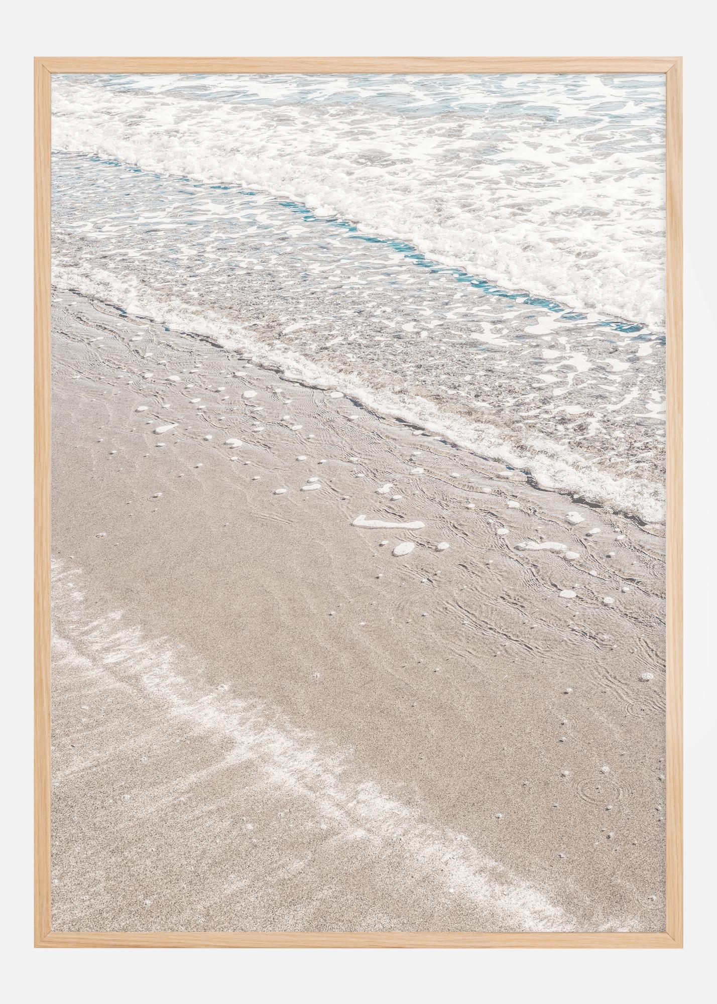 Tento uklidňující plakát zobrazuje přirozenou krásu pobřežní hranice, kde se moře setkává se zemí. Jemný písek, tvarovaný měkkými vlnami moře, vytváří texturu, která je jak jednoduchá, tak komplexní. Klidné barvy písku se harmonicky mísí s bílou pěnou moře a jasně tyrkysovou linií, kde se vlna láme, což přináší pocit klidu a čistoty.