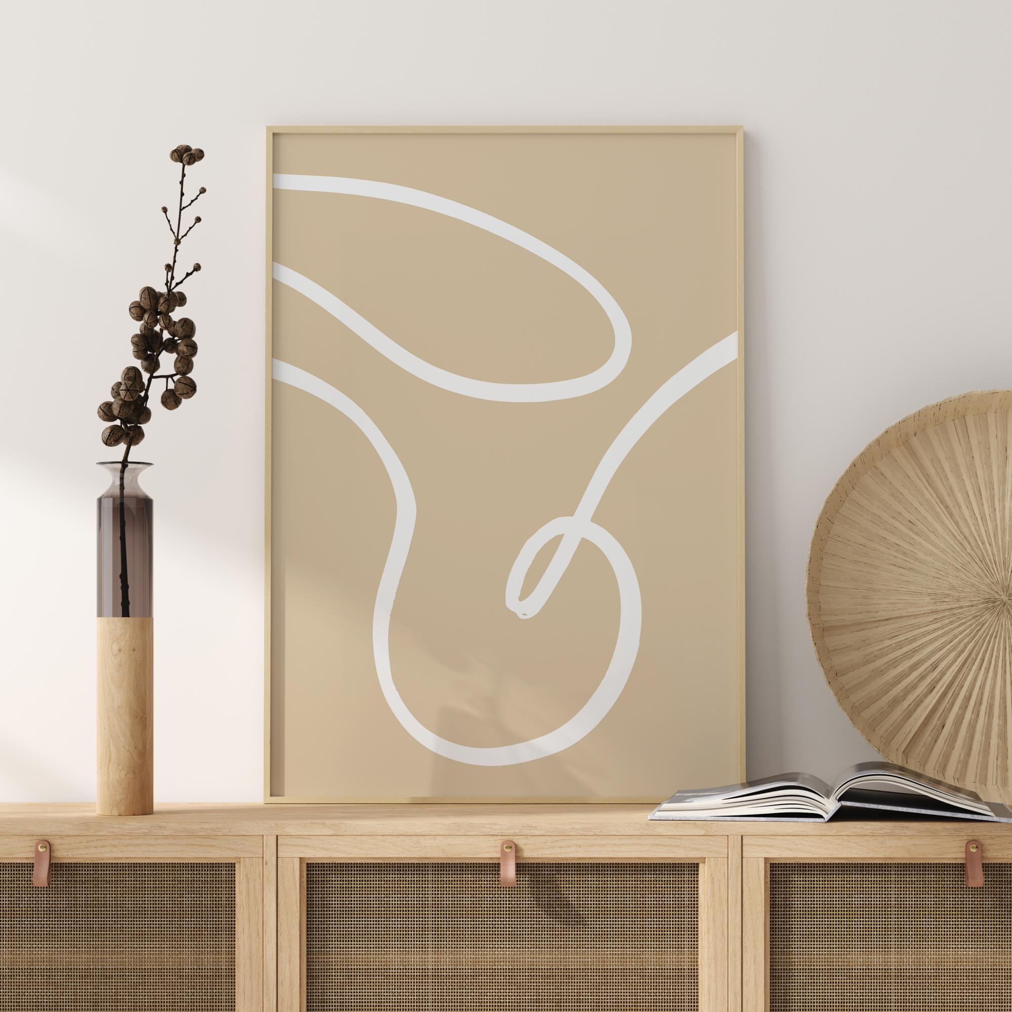 Jednoduchý plakát s kresbou, kde jsou smetanově bílé linie viděny jako spirály na béžovém pozadí, aby popustily uzdu fantazii. Můžete vidět a prožít, co chcete, když se díváte na toto dílo. Pro ještě silnější efekt můžete plakát pověsit na stěnu s odvážnou barvou v domě.