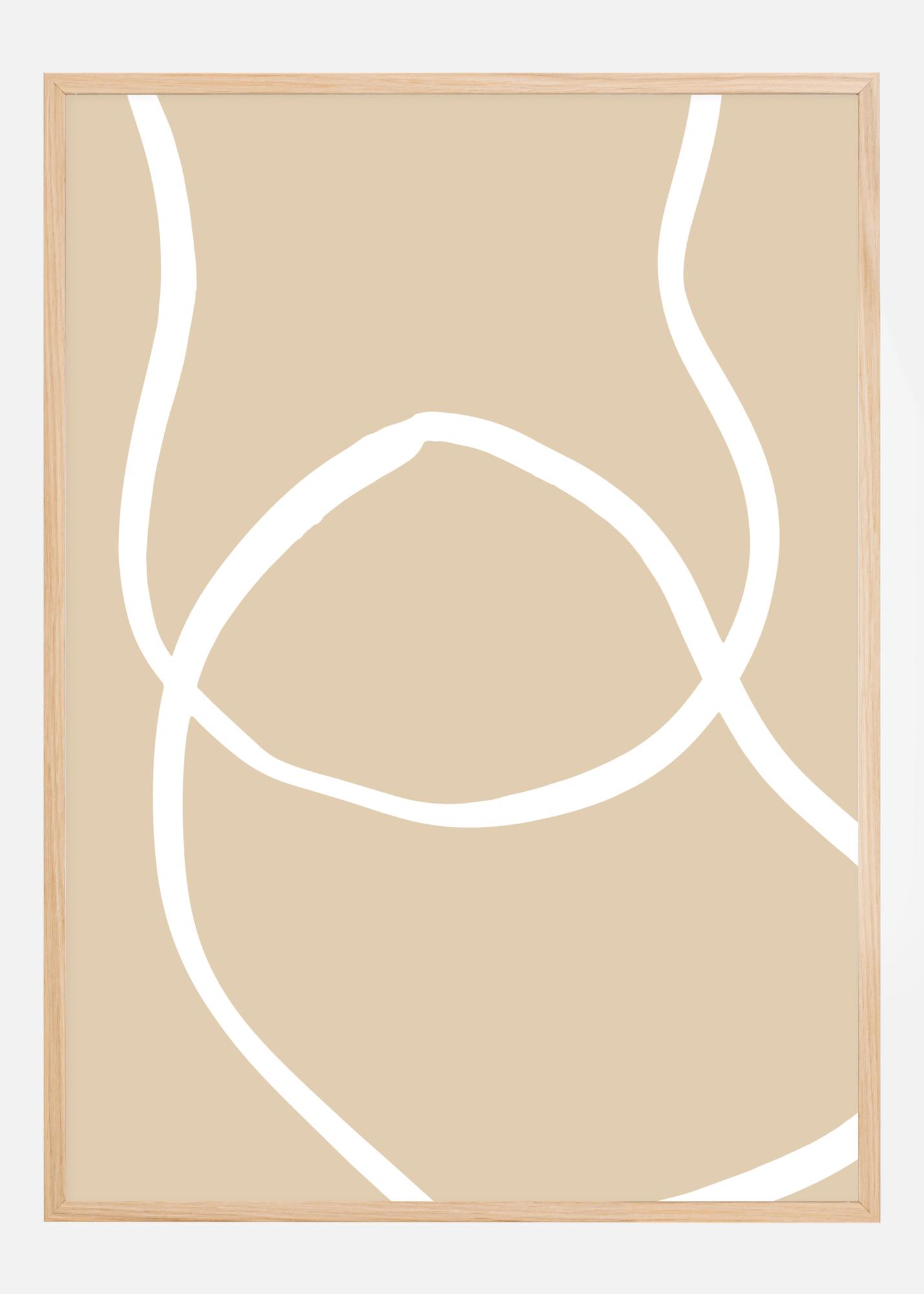 Minimalistický plakát s krémovými liniemi, které tvoří tvary na béžovém pozadí. Zakřivené linie se pohybují přes dílo, s průsečíkem uprostřed, který přitahuje pohled k překrývajícímu se kruhovému útvaru. Pro odvážné prohlášení můžete tento obraz pověsit na světle modrou zeď, aby vyniklo béžové.