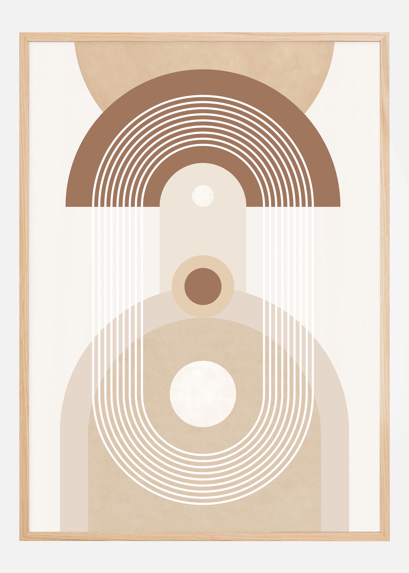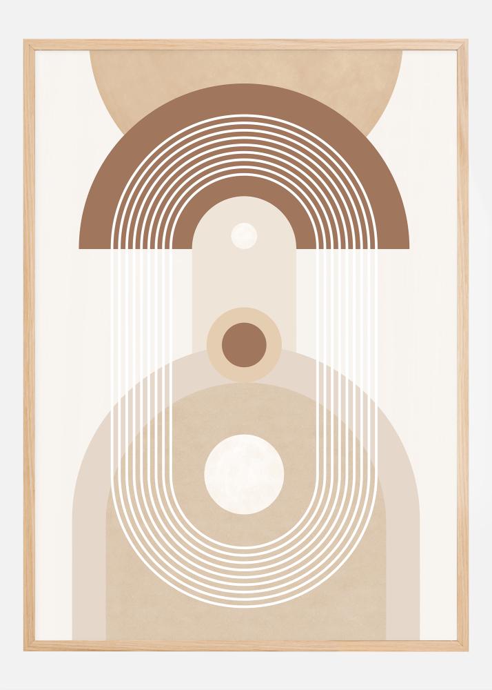 Tento sofistikovaný a elegantní plakát pokračuje v naší kurátorské sbírce umění stylu mid-century modern. Abstraktní kompozice, která si hraje jak s formou, tak s negativním prostorem, využívá omezené barevné spektrum béžových a hnědých tónů k vytvoření pocitu hloubky a pohybu. S jejími geometrickými tvary a překrývajícími se liniemi nabízí tento plakát jemnou komplexnost, kterou lze ocenit ze všech úhlů.
