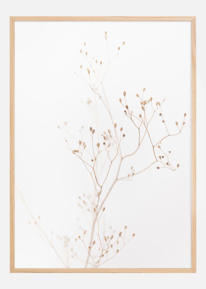 Tento plakát zachycuje jemnou krásu větve se suchými semeníky, vyobrazené proti klidnému, neutrálnímu pozadí. Jemné linie a tlumené tóny vytvářejí pocit klidu a přirozené elegance. Tento obraz je náladovou připomínkou tiché strany přírody, kde i ty nejtišší prvky mají svou vlastní krásu a sílu.