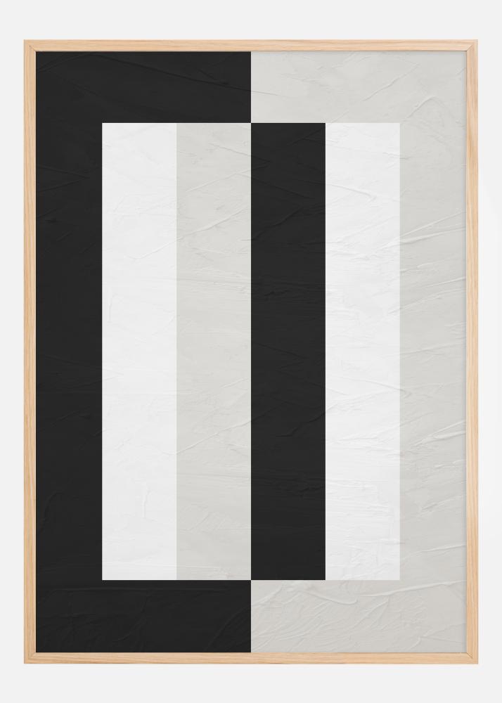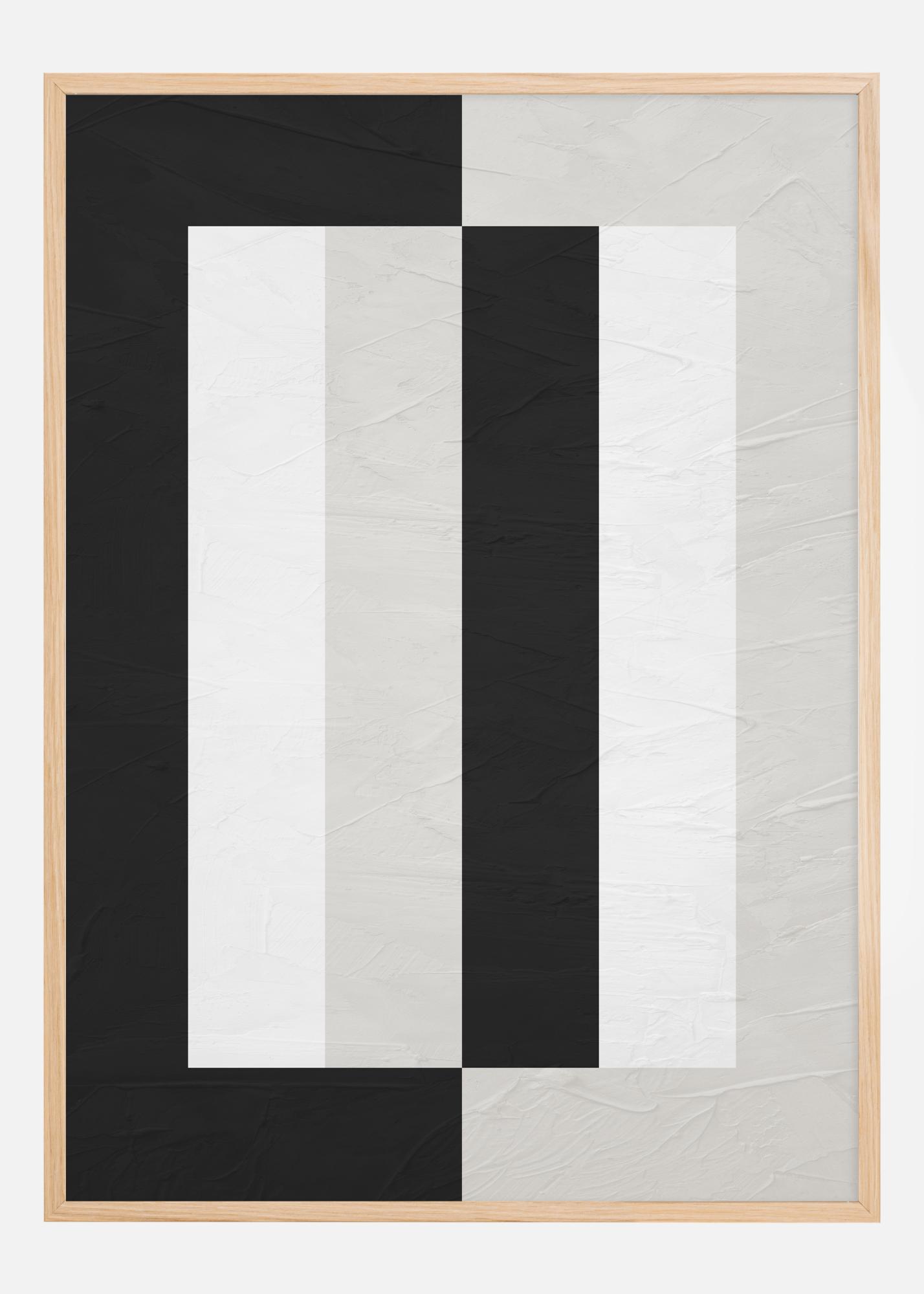 Tento sofistikovaný plakát představuje odvážnou a grafickou kompozici, která okamžitě upoutá pozornost diváka. Kontrastní kombinace černé a bílé tvoří sérii vertikálních linek a bloků, což vytváří optickou iluzi hloubky a pohybu. Tento plakát je ideální pro moderního designéra interiérů, který hledá umělecké dílo, jež vyjadřuje pocit elegance a moderního designu. Striktní barevná paleta usnadňuje integraci tohoto obrazu do různých pokojů a prostředí.
