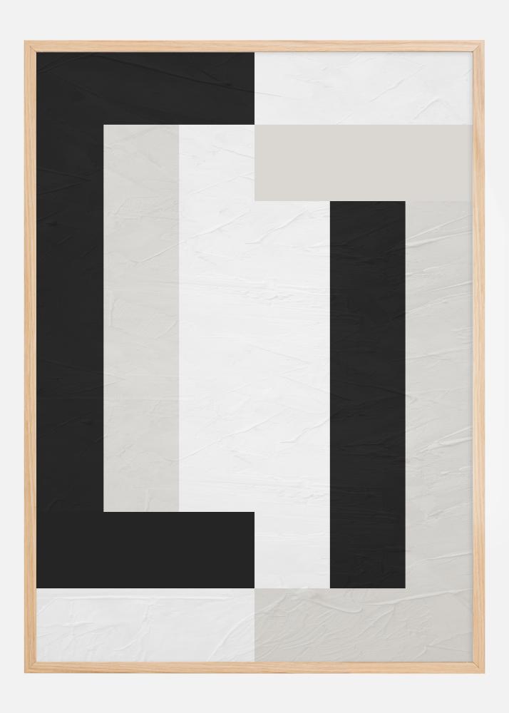 Tento výrazný plakát kombinuje jednoduchost moderního umění s odvážným geometrickým designem. Kontrastní hra mezi černou a bílou je rozdělena do obdélníkových bloků a linií, které společně vytvářejí představu rovnováhy a asymetrie. Ideální pro ty, kteří oceňují silné vizuální vyjádření, tento tisk se dokonale hodí do minimalistického nebo současného domova. Nabízí stylovou jednoduchost, která se může stát středem místnosti nebo přispět k větší, složitější kompozici.