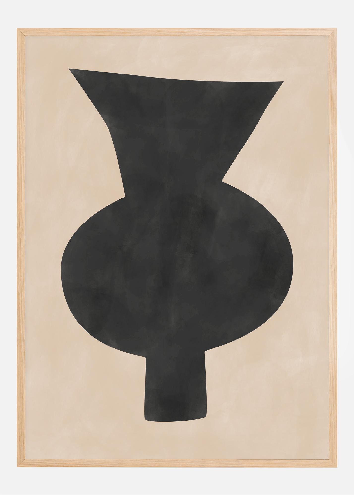 Tento plakát zachycuje podstatu současného abstraktního umění svým odvážným a jednoduchým černým tvarem připomínajícím vázu nebo sochu, který nabízí silný vizuální efekt proti neutrálnímu pozadí. Kontrast mezi hlubokou černou a uklidňující béžovou činí z tohoto díla perfektní plakát pro každého, kdo chce udělat stylové, ale rozhodné prohlášení v interiéru. Dynamická a poněkud organická silueta tvaru vytváří pocit pohybu i klidu, což vybízí k reflexi a interpretaci.