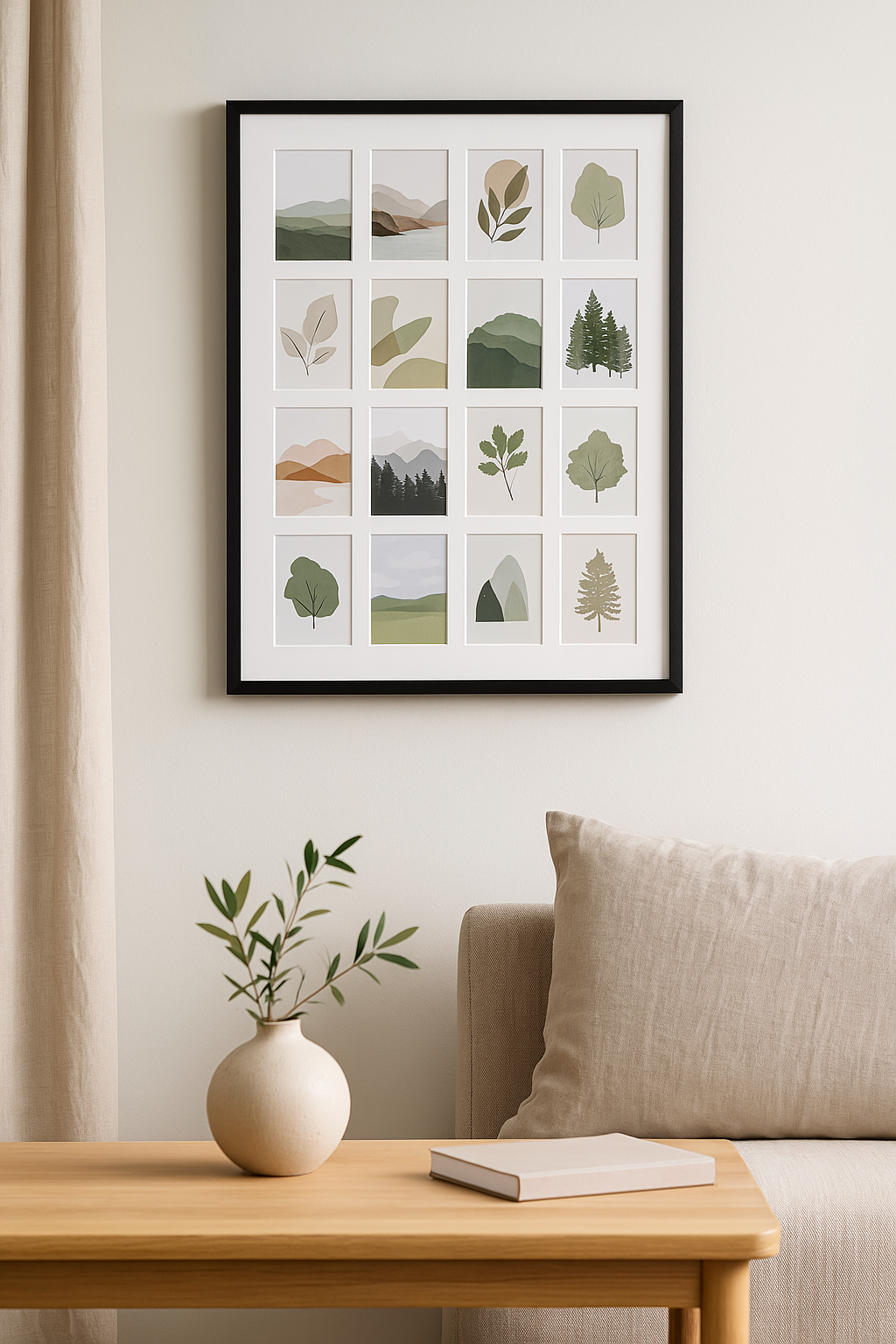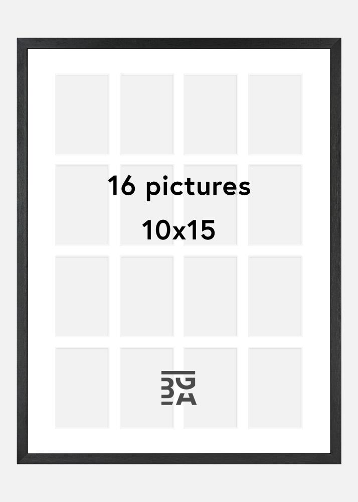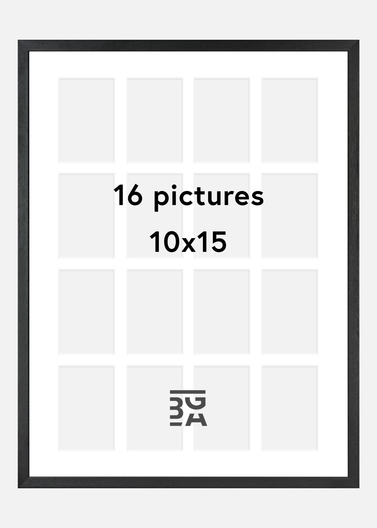 Černé dřevo s paspartou pro 16 obrázků se dokonale hodí pro fotografie dětí, domácích mazlíčků nebo možná obrázky z poslední dovolené. Černý, stylový rám v kombinaci s bílou paspartou zdůrazňuje barvy motivů a také dobře vypadá u černobílých obrázků.