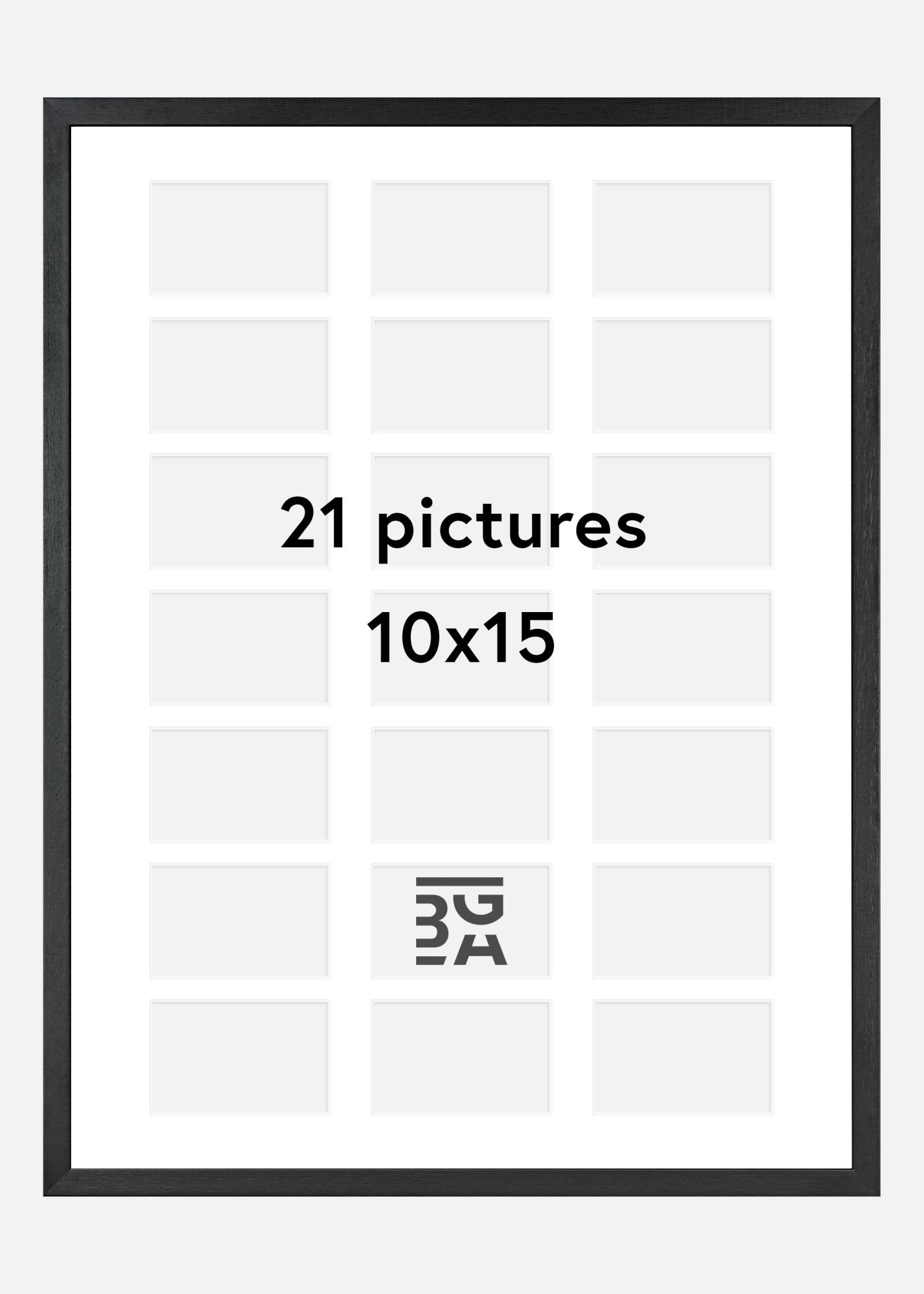 Černé Dřevo s paspartou pro 21 obrázků se perfektně hodí pro fotografie dětí, domácích mazlíčků nebo možná pro snímky z poslední dovolené. Černý, elegantní rám v kombinaci s bílou paspartou zvýrazňuje barvy motivů a také vypadá dobře na černobílých obrázcích.