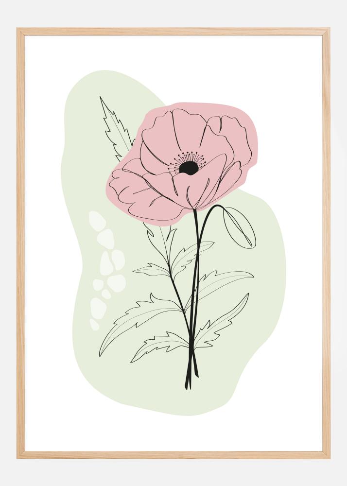 Abstraktní plakát s potiskem vlčího máku. Elegantní černé linie tvoří tento jednoduchý, ale přesto efektivní obraz. Okvětní lístky a listy jsou pečlivě načrtnuté a červené a zelené barevné sekce zvýrazňují květinu na bílém pozadí. Pověste tento vkusný potisk v kuchyni jako trochu bláznivý výraz.
