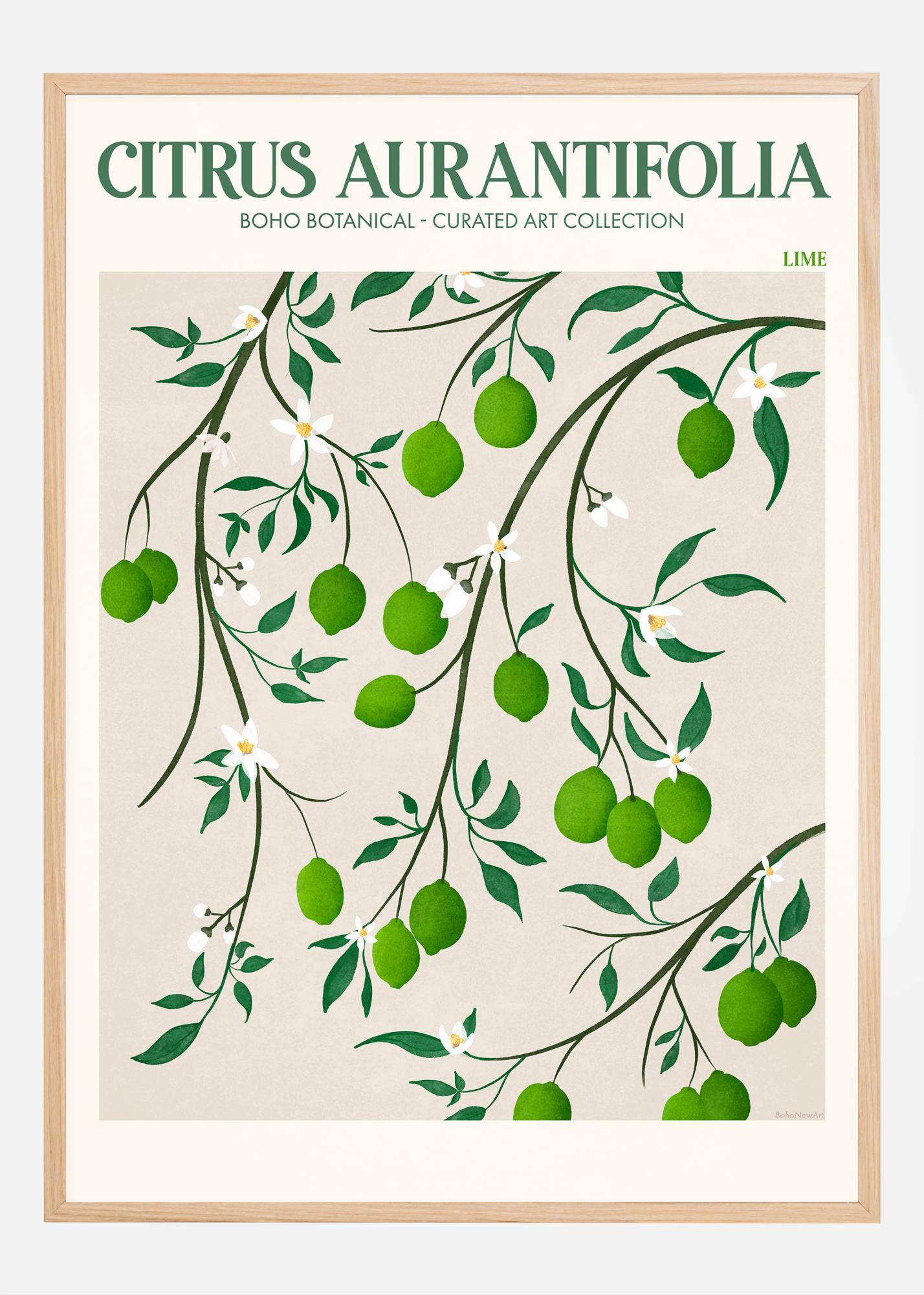 Tento elegantní a sofistikovaný plakát představuje Citrus aurantifolia, známý jako limetka, z naší kolekce BOHO Botanical - Curated Art Collection. Umělecké dílo krásně zobrazuje zelené limetky visící z rozvětvených větviček, obklopené jemně bílými květy na neutrálním pozadí. Každý prvek tohoto plakátu je pečlivě vytvořen tak, aby reflektoval čerstvost a vitalitu limetek, což z něj činí nádherný doplněk do kuchyní nebo obývacích pokojů, stejně jako do komerčních prostorů, jako jsou kavárny nebo restaurace, které si cení přírodní a organické atmosféry.