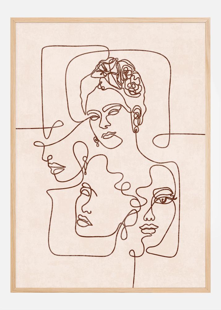 Dejte svému domovu umělecký nádech s tímto elegantním plakátem, který oslavuje krásu a sílu ženskosti. V jediné, proplétající se linii se zde rýsují čtyři ženské tváře jako obraz jednoty a rozmanitosti. Každý profil je vytvořen s jednoduchostí, která oslovuje divákovu fantazii, a činí tak tento plakát ideálním začátkem konverzace. V obleku sofistikovaného béžového odstínu zve pozadí pocit tepla a jemnosti, zatímco hnědé linie nabízejí silný vizuální kontrast.