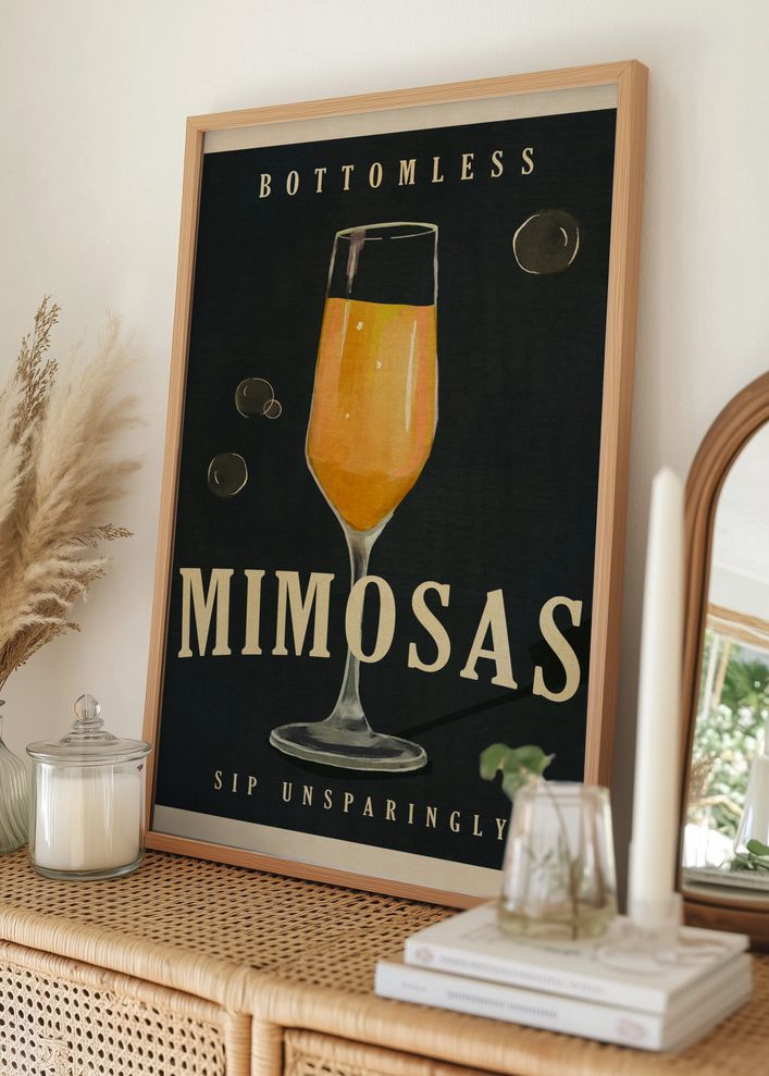 Bottomless Mimosas Art Deco Cocktail Bar Art Plakát
