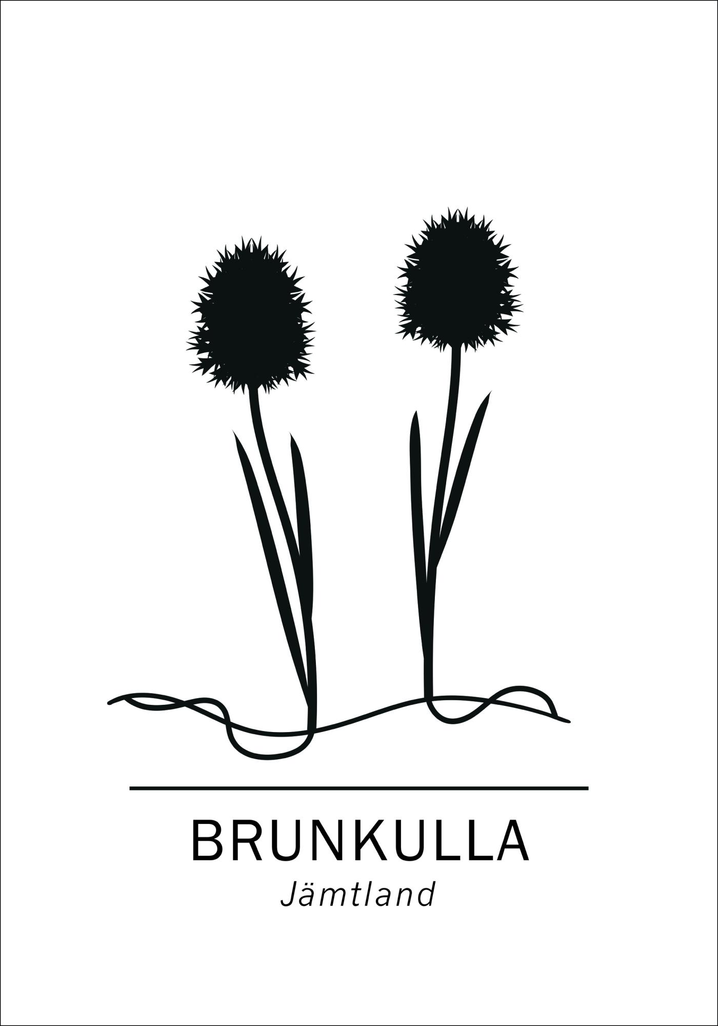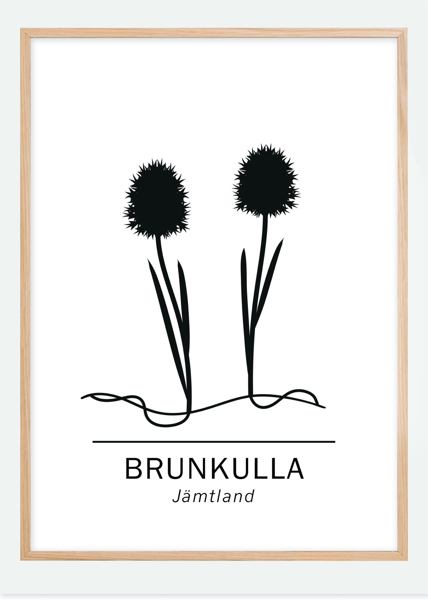 Jednoduchý plakát se dvěma vzácnými černými hnědými květy proti bílému pozadí. Slova Brunkulla a Jämtland jsou zobrazena pod jednoduchými orchidejemi v tomto minimalistickém obrazu. Sladit se světlou barvou podle vašeho výběru, aby byly silné kontrasty ještě výraznější.