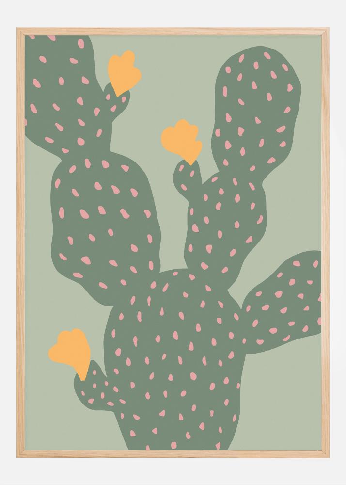 Tento hravý a okouzlující plakát zobrazuje stylizovaný obraz kaktusu se světlými akcenty. Se svou jemnou zelenou pozadím a zelenými kaktusovými figurami s růžovými tečkami a žlutými květy nabízí obraz svěží a radostný pocit. Tento umělecký tisk kombinuje hravost s moderní designovou estetikou a byl by nádhernou nástěnnou dekorací v dětském pokoji, světlé kuchyni nebo kreativním pracovním prostoru, který vyžaduje dávku přírodou inspirovaného humoru a barev.