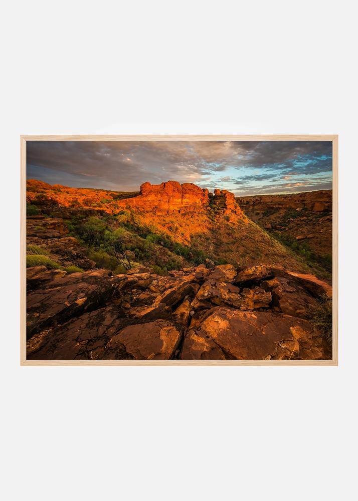 Plakát s fotografií neúrodných červených hor při západu slunce, něco pro ty, kteří mají rádi pouště a skalní formace, k zavěšení na zeď. Teplé červené tóny proti ledově modré obloze a hloubka obrazu vytváří zajímavý motiv. Zarámujte plakát s pěkným fotorámečkem a umístěte na stěnu spolu s dalšími pouštními motivy.