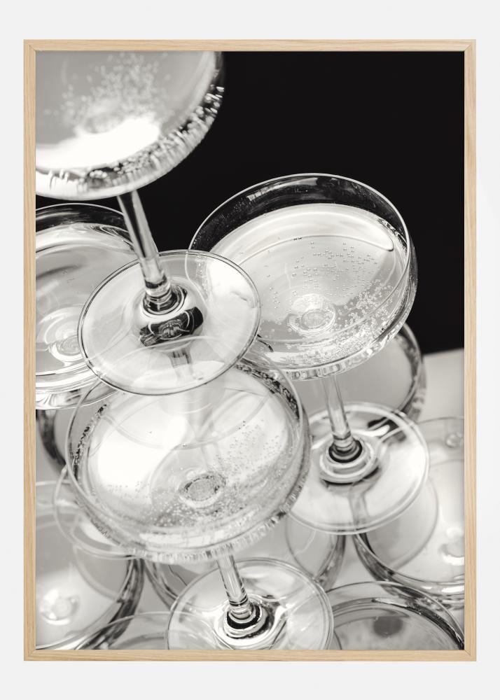 Tento elegantní a sofistikovaný plakát zachycuje rozvernou kouzelnou atmosféru fontány ze šampaňského. Průhledné sklenice, naplněné šumivým šampaňským, jsou krásně uspořádány v působivé konstelaci. Detaily bublinek a odrazy světla ve skle přináší obraz k životu a vytvářejí atmosféru oslavy a radosti.