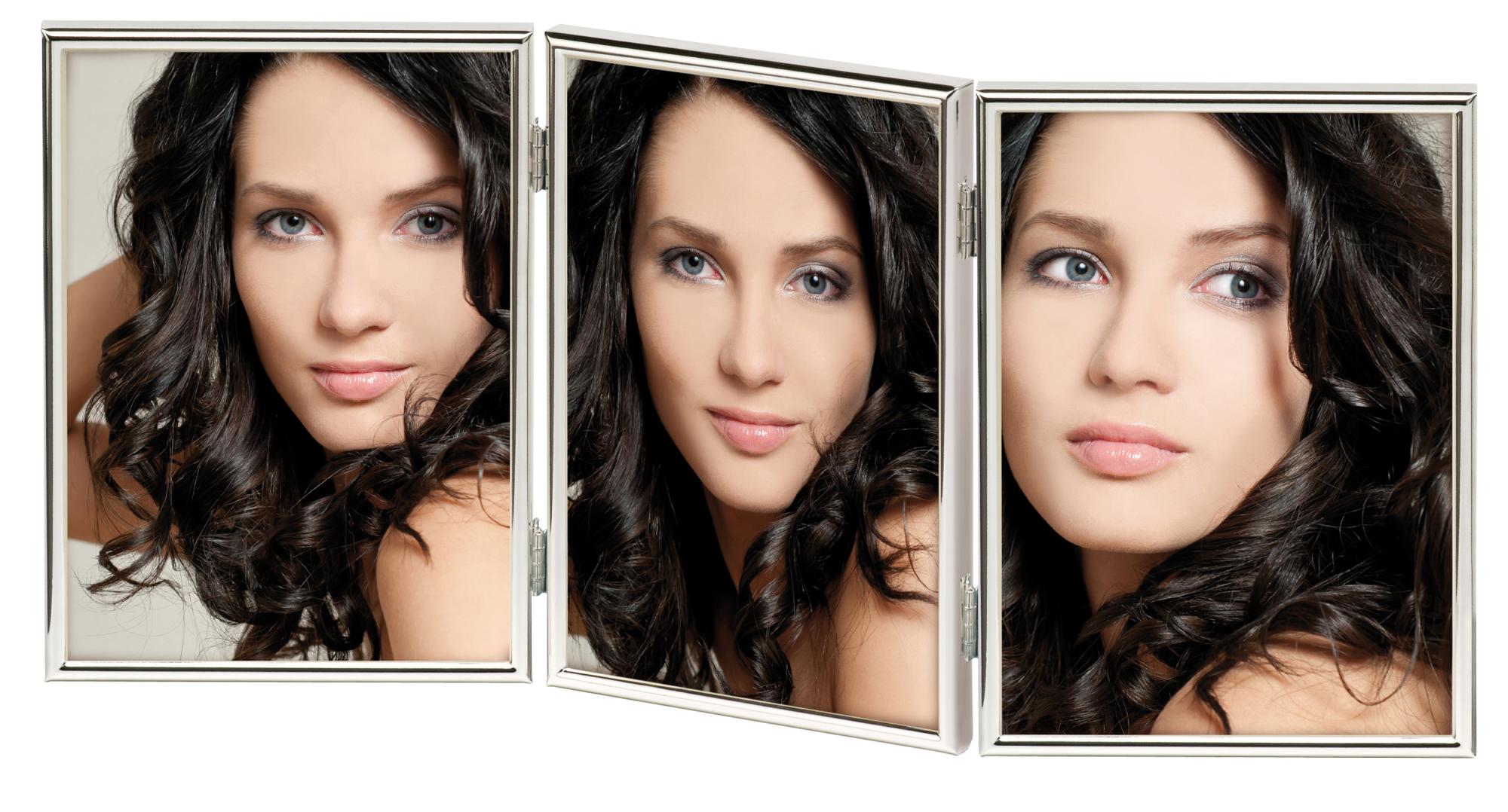 Chloe vikram je elegantní portrétní rámeček s oblým profilem v novém stříbře, který pojme 3 obrázky o rozměru 13x18 cm. Chloe je rámeček vysoké kvality od Walthera se zadní stranou potaženou černým sametem.