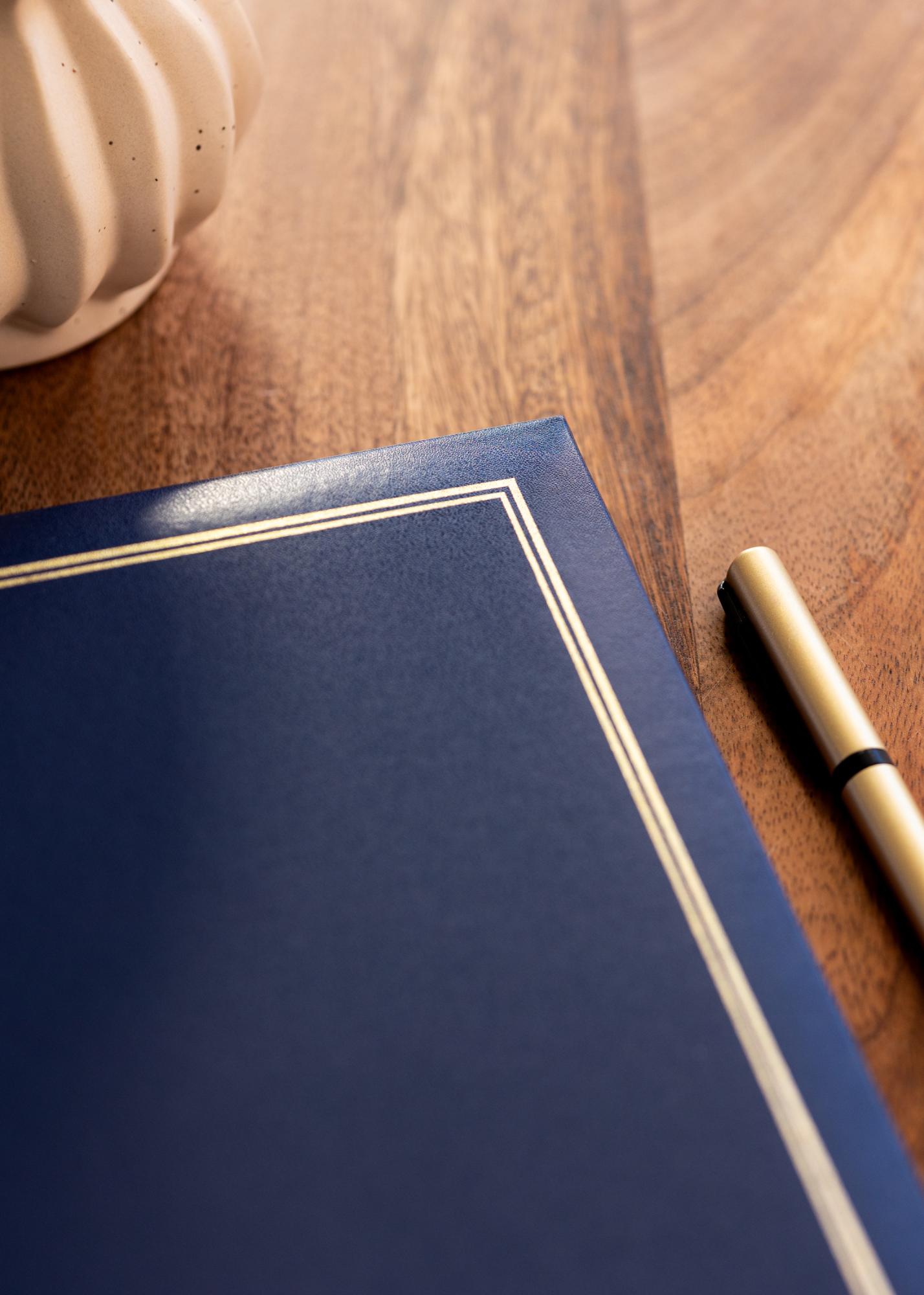 Classico Album Blå je perfektní volbou pro ty, kteří chtějí vytvořit osobní a stylové fotoalbum. S jeho elegantními modrými deskami se zlatými detaily se toto album stane krásným dekoračním prvkem ve vašem domě. Album měří 30x33 cm a obsahuje 100 bílých stránek, což odpovídá 50 listům, na které můžete nalepit své oblíbené fotografie a vzpomínky.