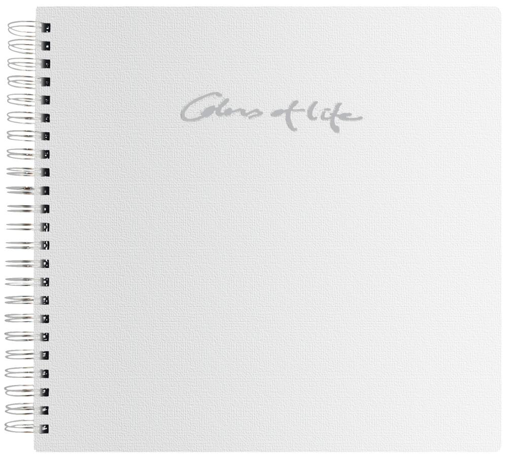 Spirálové album 30x30 cm s 24 bílými listy bez kyselin, připravené k naplnění vzpomínkami! Na přední straně alba je text "Colors of life" ve stříbře.