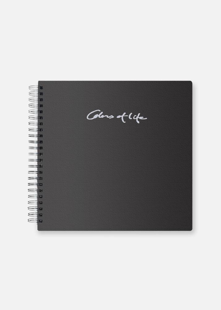 Spirálové album o rozměru 30x30 cm se 24 černými listy bez kyselin, připravené k naplnění vzpomínkami! Na přední straně alba je text "Colors of life" ve stříbrné barvě.