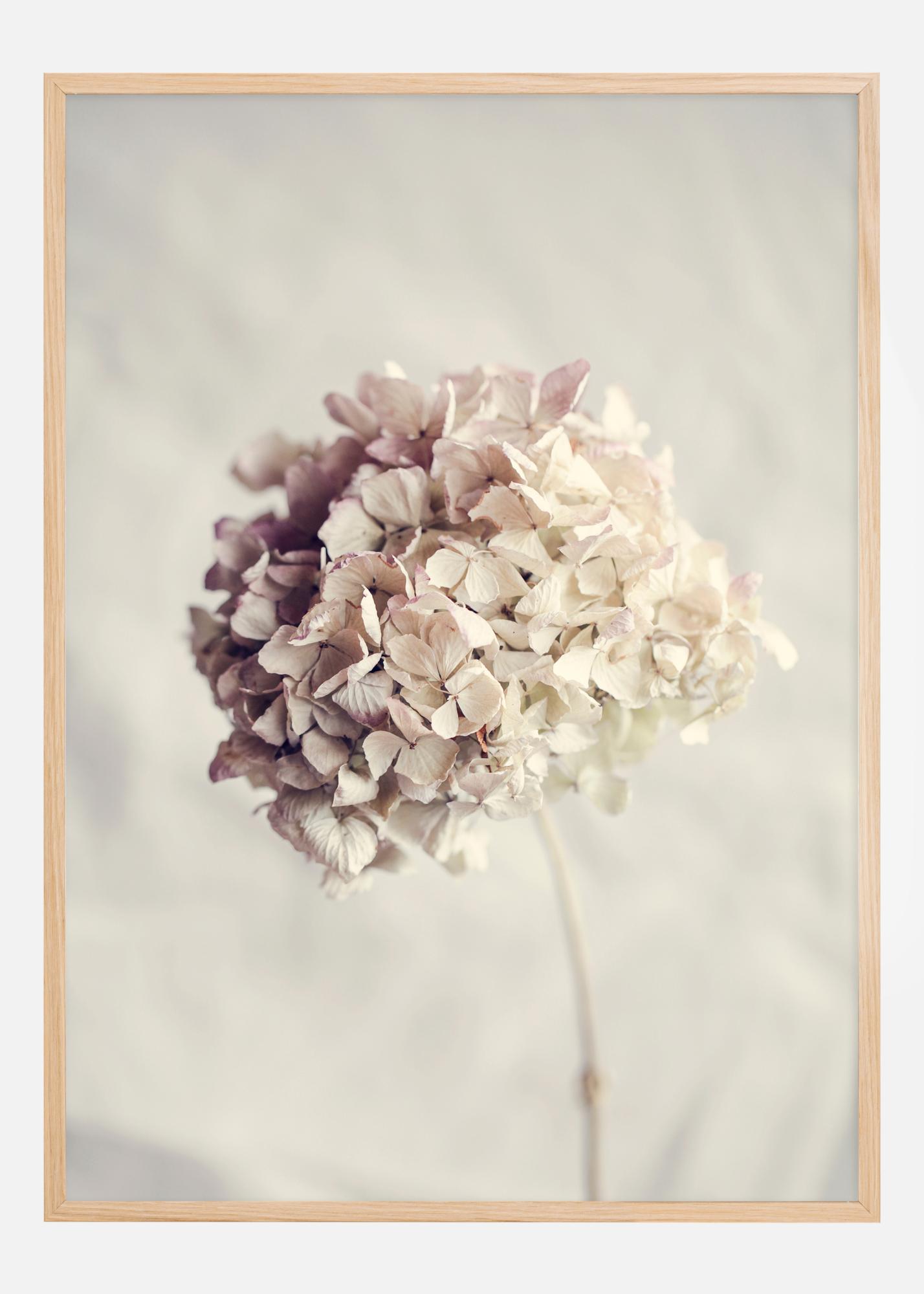 Tento plakát představuje křehký a poetický obraz sušené hortenzie. Jeho jemné odstíny a delikátní textura květů vytvářejí pocit nostalgie a nadčasové krásy. Tento tisk je poctou pomíjivosti přírody a kráse přechodných okamžiků, které život nabízí.