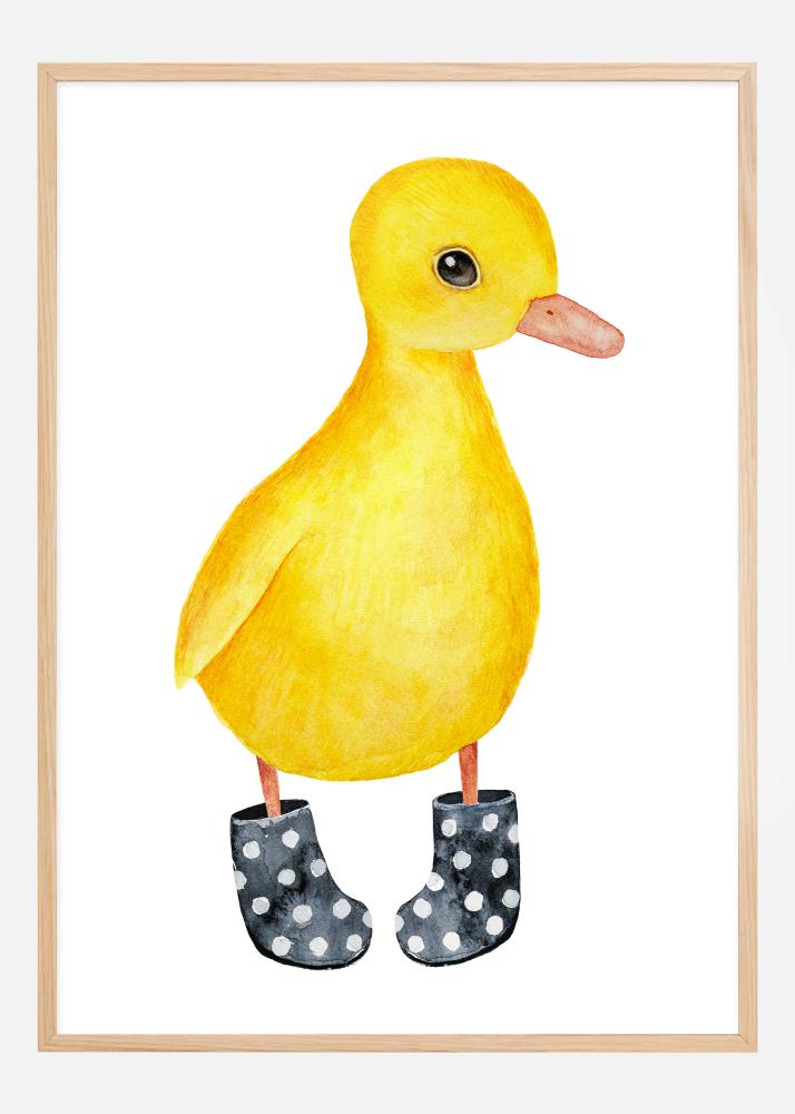 Objevte kouzlo našeho slunného plakátu s kachničkou, který šíří radost a hraje na struny vtipu. Tato okouzlující ilustrace zobrazuje roztomilé kačátko se žlutým peřím, obuté do puntíkovaných gumáků - obraz, který zaručeně vyvolá úsměvy. Je to hravý tisk, který se skvěle hodí do dětského pokoje nebo jako světlý a veselý detail v jakémkoli domově, přinášející pocit radosti a nevinné touhy po dobrodružství.