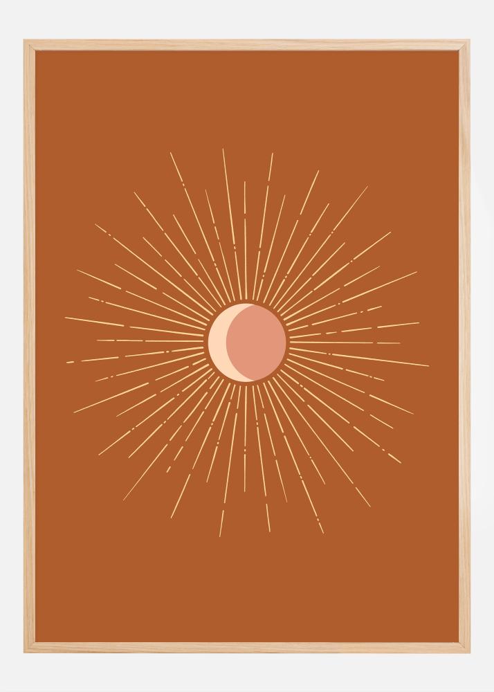 Tento minimalistický a elegantně navržený plakát s abstraktním zatměním slunce se stane stylovým a moderním prvkem na jakékoli stěně. Díky svým čistým liniím a zářivému motivu na hlubokém terakotovém pozadí, tato grafika představuje dokonalou kombinaci jednoduchosti a sofistikovanosti. Centrální prvek designu, kruh s explodujiícím linemi, symbolizuje světlo a energii a přidává do místnosti dynamický efekt.
