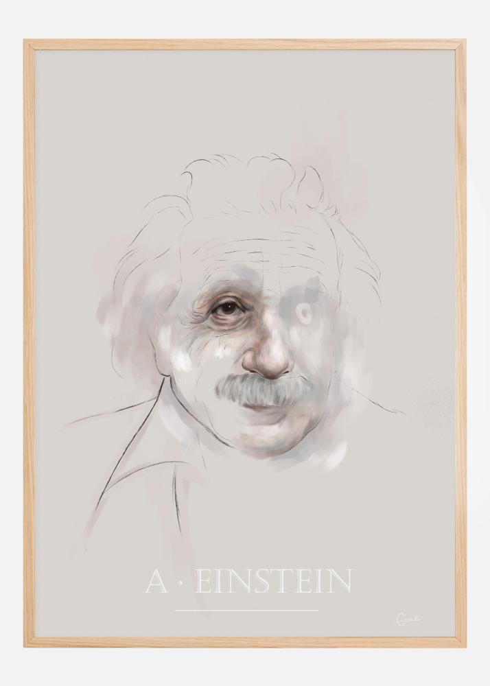 Einsteinův plakát zobrazující rychlý náčrt excentrického vědce. Jemné linie vytvářejí část jeho tváře, ale pouze jedno oko, jeho nos a knír jsou detailní a způsobují, že se Einstein vynořuje z plakátu. Nechte se inspirovat jeho přátelským pohledem, když se na vás dívá.