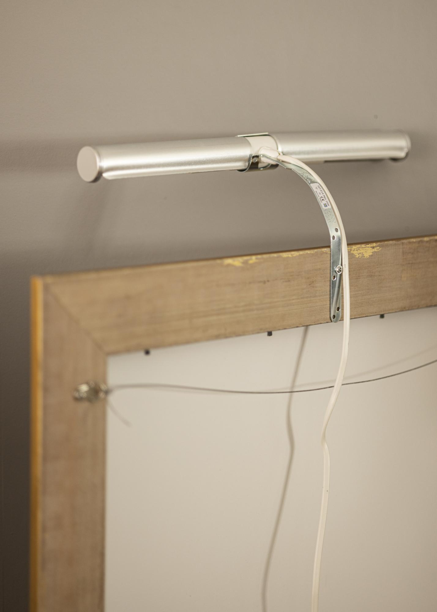Normálně umisťujete osvětlení na zadní stranu rámu, nevýhodou je, že je potřebný dřevěný rám (některé kompozitní rámy jsou také vhodné) s širokým profilem, aby bylo možné do rámu šroubovat. S naším nástěnným držákem se tím nemusíte zabývat a jednoduše namontujete své osvětlení přímo na stěnu za obrazem.