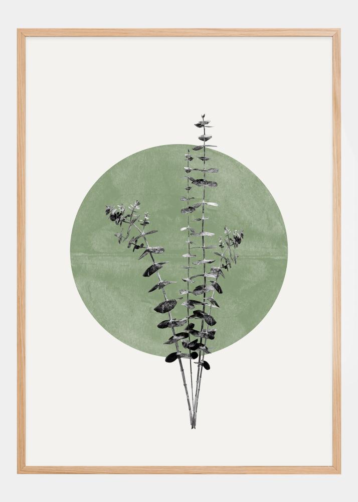 Zkrášlete svůj pokoj plakátem, který zobrazuje jemnou krásu přírody na uklidňujícím zeleném pozadí evokujícím měsíc. Tento plakát představuje výraznou siluetu eukalyptu, jehož detailní listy a větve působí živě proti jemnému zelenému kruhu. Design oslavuje jednoduchou estetiku přírody a vytváří relaxační prvek ve vašem interiéru.