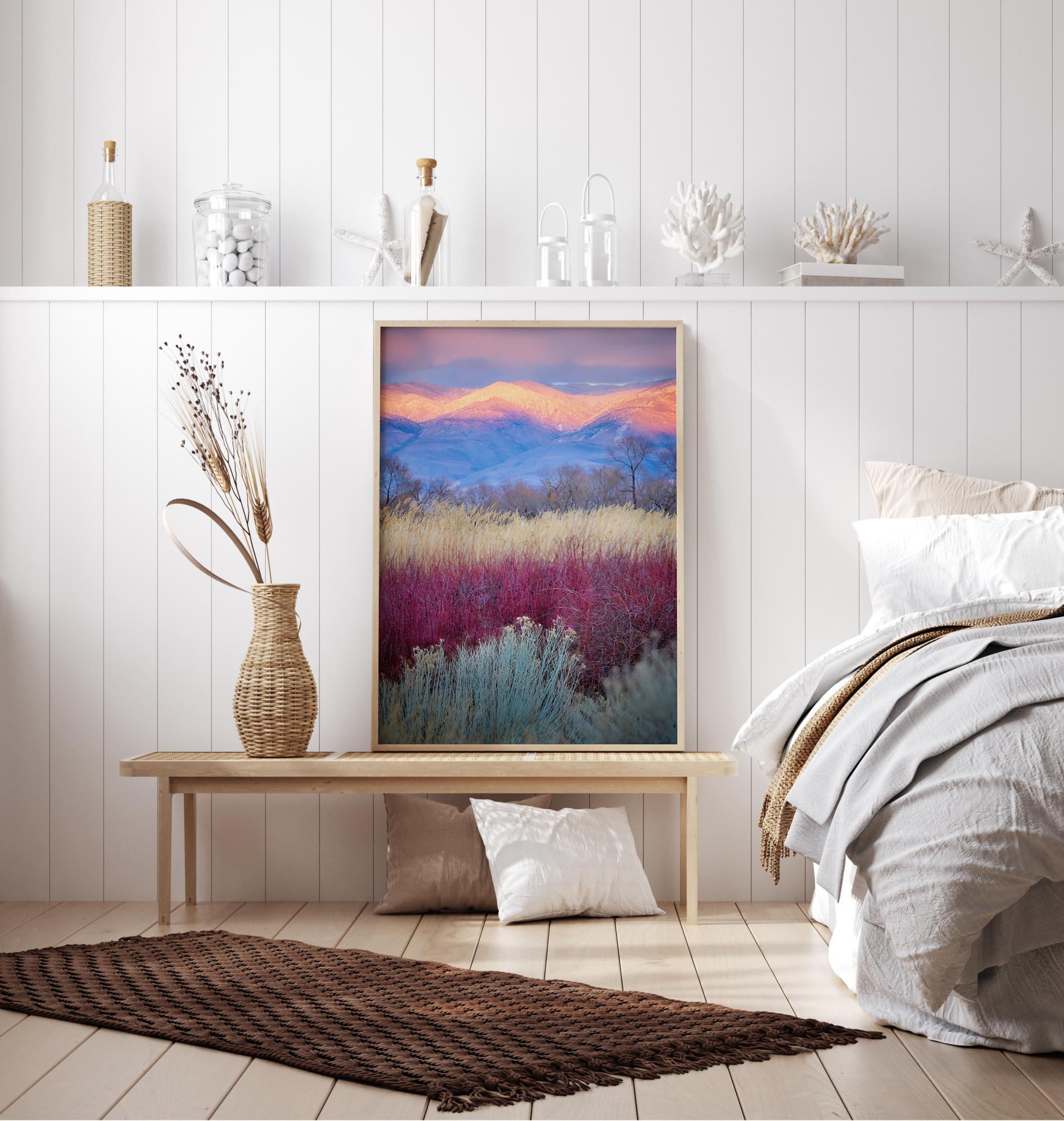 Pestrý plakát zobrazující pole rozprostírající se směrem k vzdáleným horám. Jasné barvy vedou pohled od zelené, růžové, žluté, modré po oranžovou. Slunce se jen lehce objevuje nad horami v dálce. Pocítíte rané ranní světlo a nový den v tomto díle.