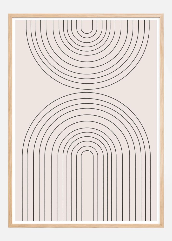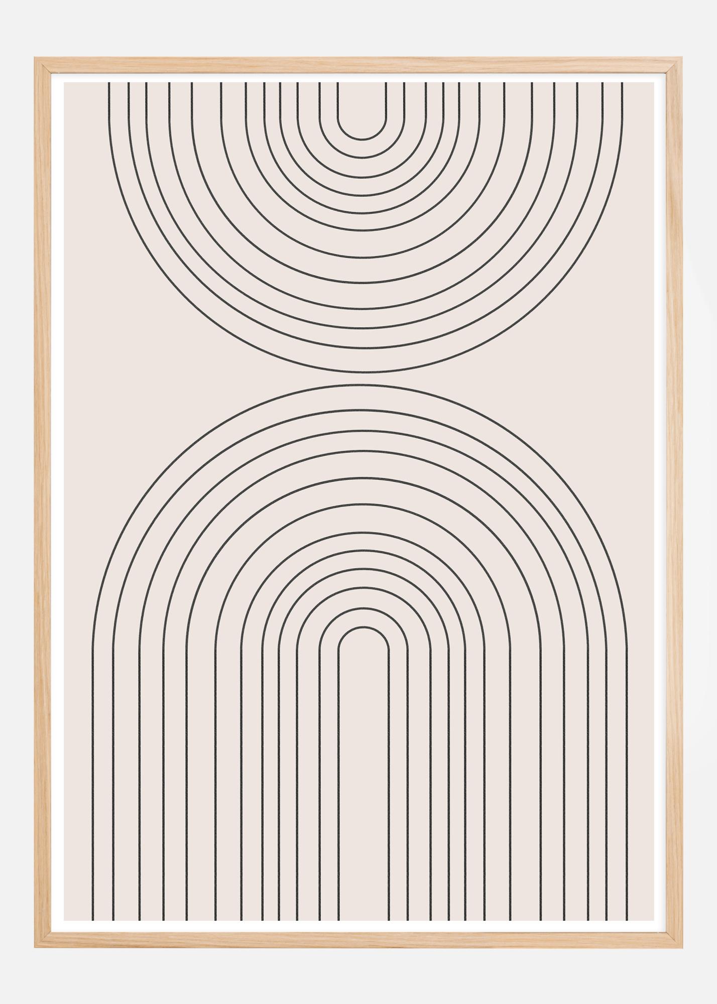 Tento elegantně navržený plakát představuje složitou a hypnotizující sérii propletených oblouků, které tvoří dvě výrazné polokulovité tvary. S vytříbenou a minimalistickou estetikou jsou linie nádherně a přesně umístěny na uklidňující, neutrální pozadí, což z něj dělá ideální pozadí pro moderní a módní interiér. Diskrétní barevné provedení v černé na odstínu off-white usnadňuje zákazníkům najít a sladit tento tisk s různými barvami a nábytkem.