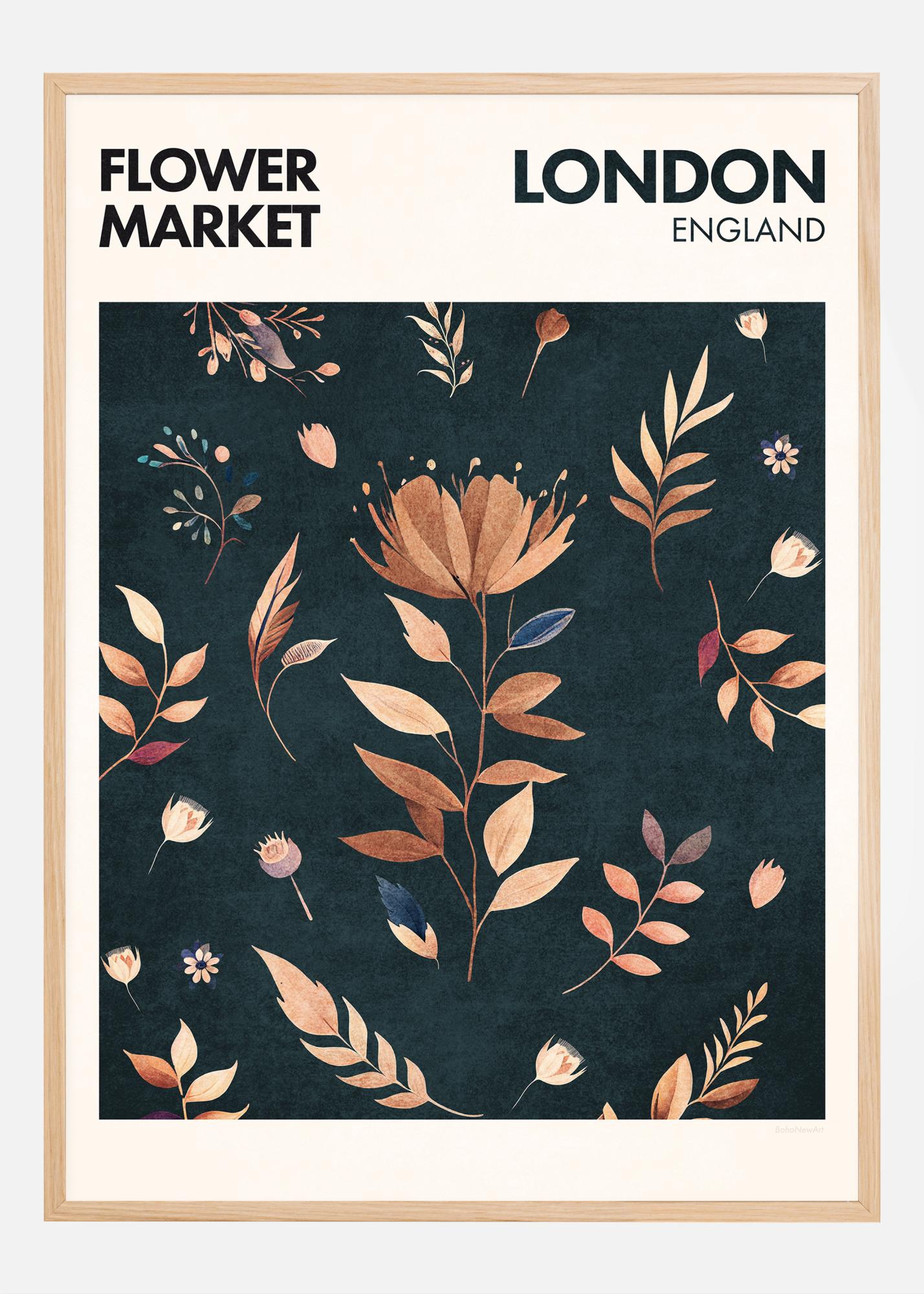 Tento okouzlující plakát zobrazuje eleganci květin z proslulého květinového trhu v Londýně. Barevná symfonie rostlinného života, která kvete v srdci Anglie, je představena s botanickou ilustrací, jež zachycuje sbírku květin a listů. Design vyzařuje pocit klasického britského šarmu a nadčasové krásy přírody.