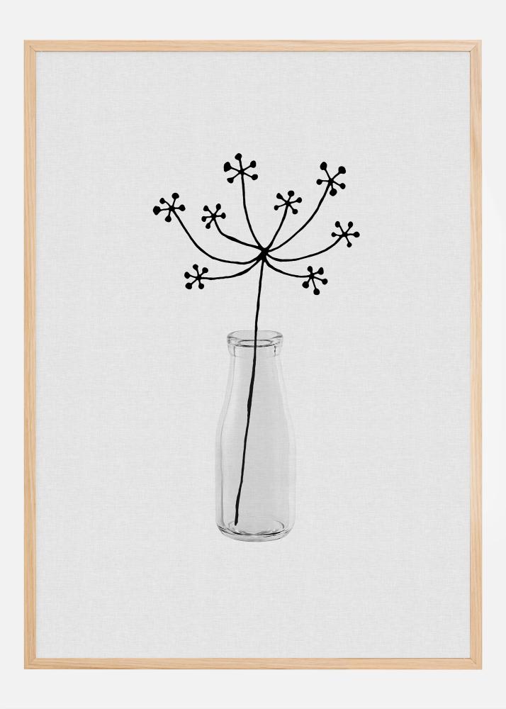 Tento okouzlující a umělecký plakát zobrazuje jednoduchost a krásu květu v siluetě. Se svým minimalistickým přístupem zachycuje motiv podstatu kvetoucí rostliny výraznými černými obrysy, které spočívají v průhledné váze, což vytváří elegantní a uklidňující obraz. Toto umělecké dílo je ideální pro přidání nádechu přírodou inspirované estetiky do moderního interiéru.