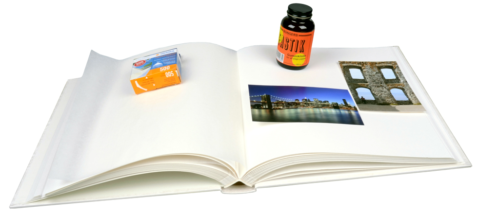 Fotografie se do alba vkládají lepidlem nebo fotografickými rohy.
