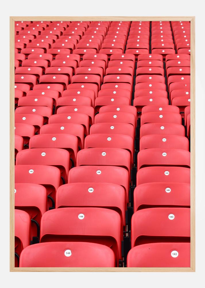Kontrast mezi živými červenými sedadly a bílými čísly a jemná hra stínů vytvářejí silný vizuální efekt, který doplňuje každý styl interiéru. Barvy tisku, dominované červenou a bílou, jsou jednoduché, ale odvážné a mají schopnost přinést do místnosti život a energii. Ať už je umístěn v obývacím pokoji, v kanceláři nebo v sportovní místnosti, tento plakát bude inspirovat a připomínat nezapomenutelné okamžiky, které jsou sdíleny na velkých stadionech po celém světě.