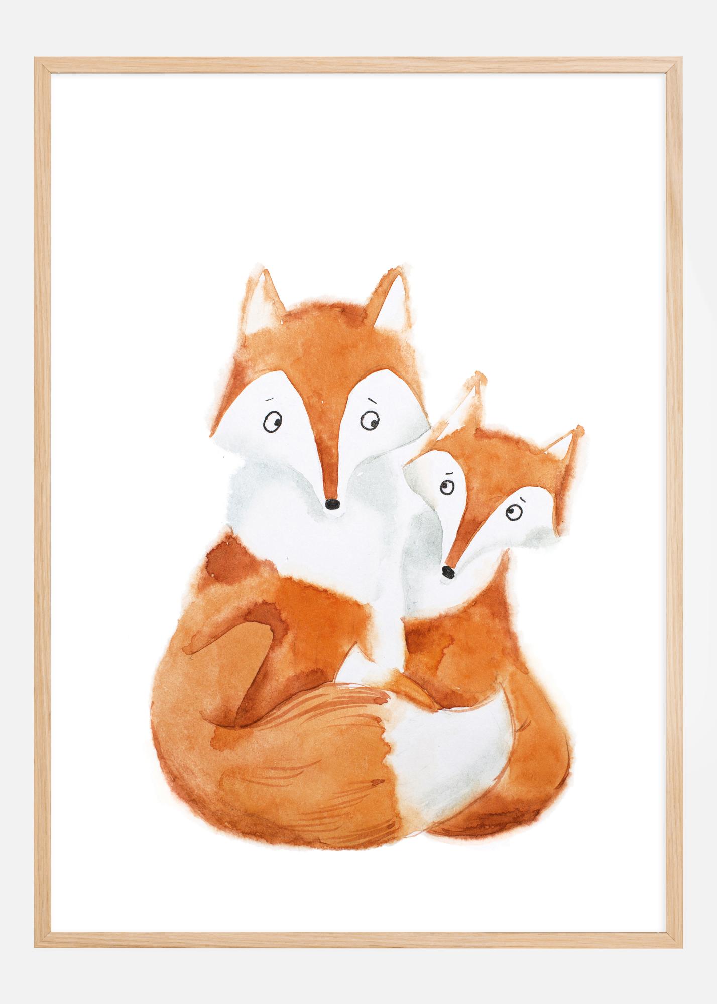 Vložte pocit tepla a rodinné blízkosti s tímto rozkošným plakátem rodiny lišek. Zobrazuje velkou lišku objímající své mládě, což je obraz, který vyzařuje lásku a bezpečí. Měkké, zemité tóny rezavé a bílé v ilustraci poskytují přirozený a uklidňující efekt, ideální pro vytvoření útulné atmosféry v dětském pokoji nebo jiné části domova, kde je kladen důraz na teplo a péči.