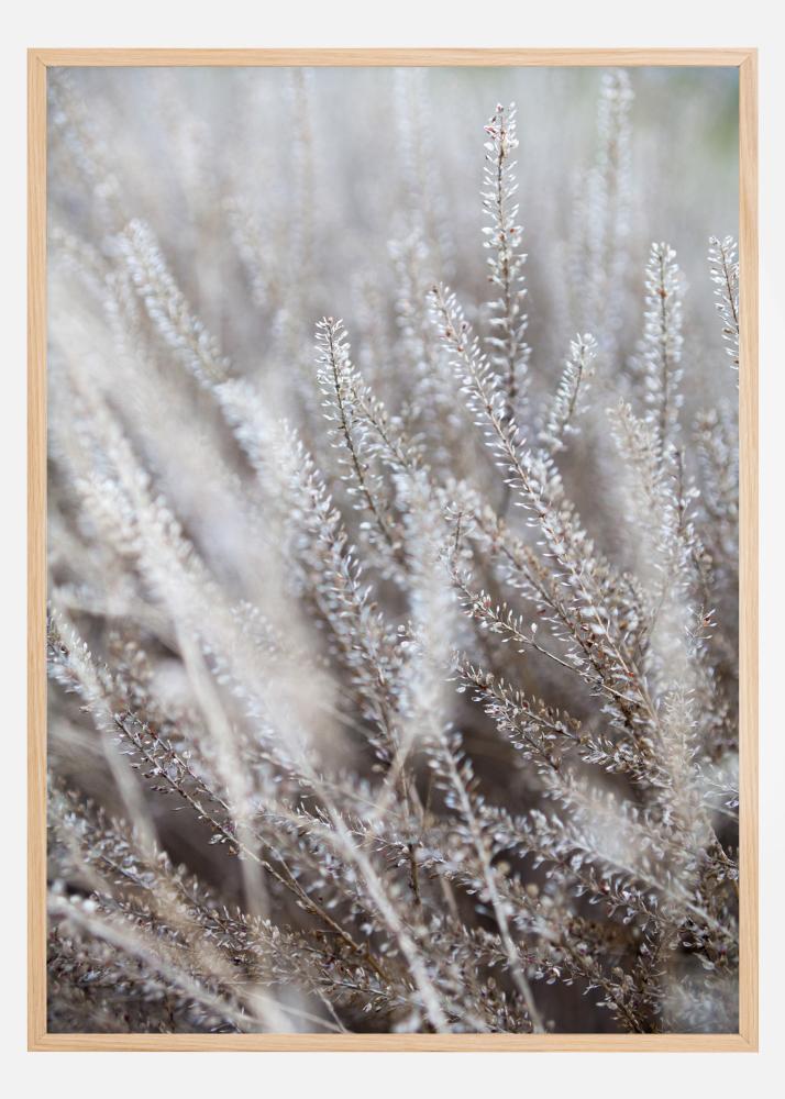 Zimní plakát s mrazivými stébly trávy. Každé stéblo křehké trávy je zachyceno na tomto úžasném a docela magickém obrázku. Stébla stojí vzpřímeně, ale splývají s pozadím, kde se celý trávníkový lán jemně vlní. Zavěste tento plakát na teplou stěnu, aby získala trochu barvy.