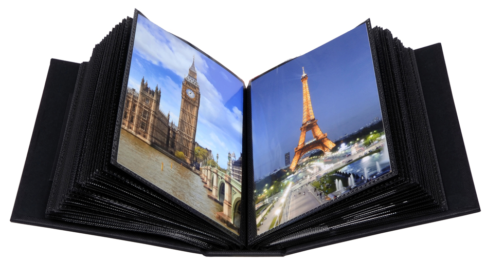 Album má silné vnější desky v černém matném odstínu. Černé albumové stránky mají místo pro 1 obrázek na straně a jsou samozřejmě bez kyselin.