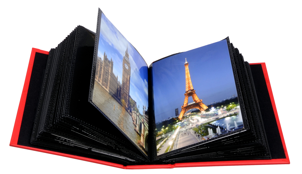 Album má pevné vnější desky v červeném matném odstínu. Černé listy na album mají místo pro 1 obrázek na stránku a jsou samozřejmě bez kyselin.