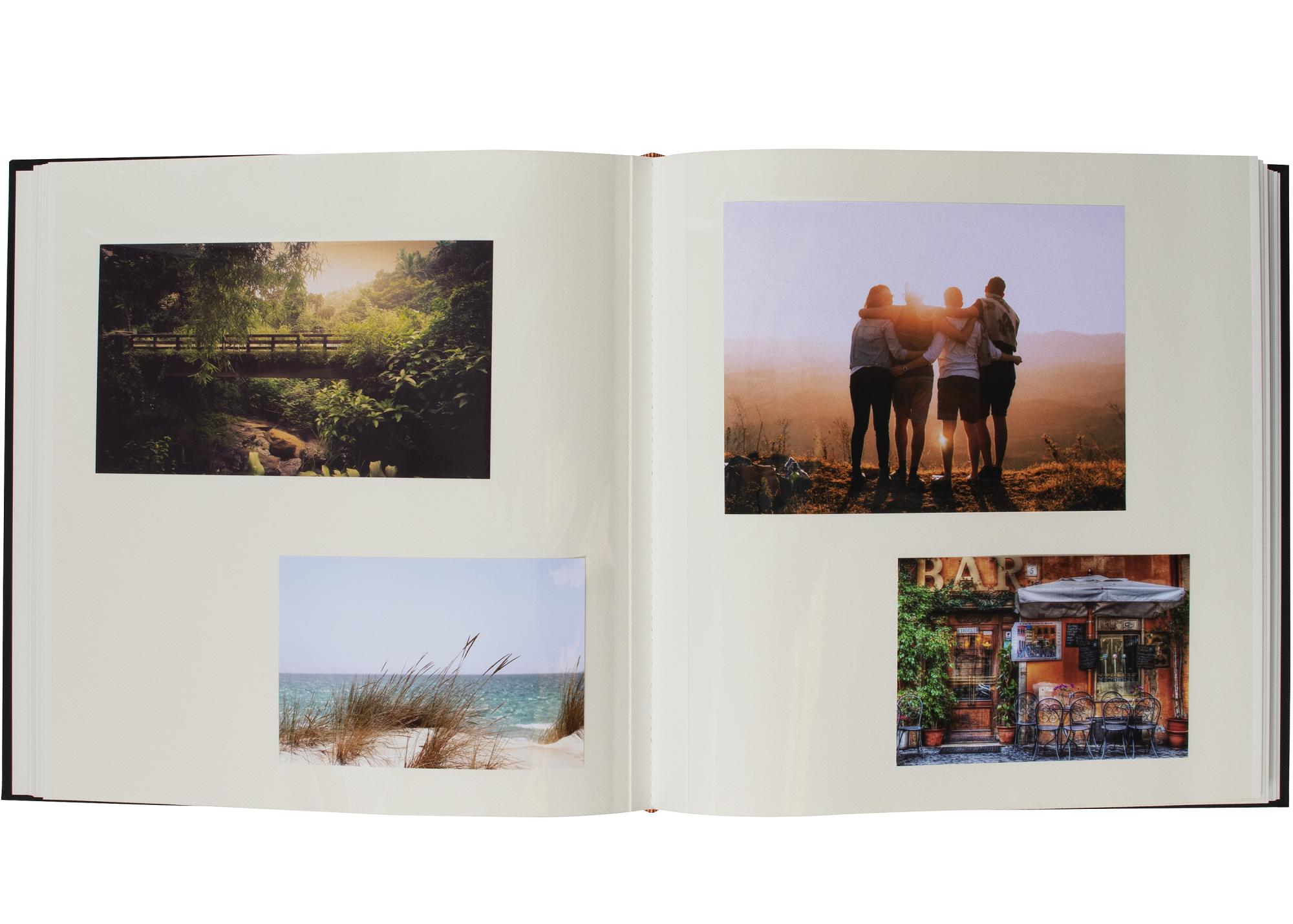 Na přední straně je místo pro vaši vlastní fotografii, která udává téma celého alba. Možná chcete, aby bylo fotoalbum naplněno nádhernými letními obrázky? Nebo s fotkami z dětství vašich dětí? Možná se toto album stane sbírkou smíšených fotek z veselých chvil během let? Vy rozhodujete!