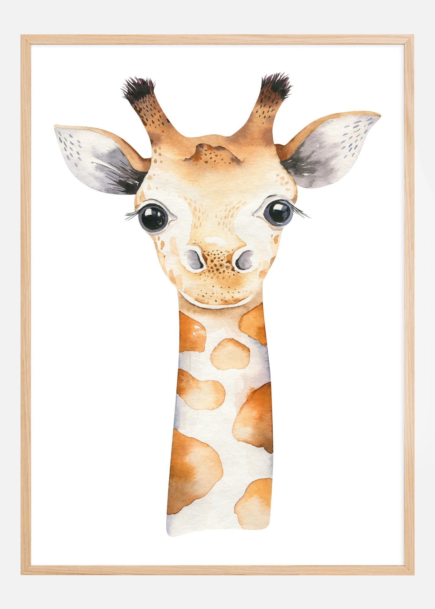 Tento plakát je skutečným nositelem radosti, ideální pro dětský pokoj nebo jako odlehčený prvek v jinak seriózním interiéru. Jemné a hravé zobrazení mláděte žirafy přináší okamžik čisté, nevinné radosti a je připomínkou divů přírody. Zemité tóny a jemná textura akvarelové malby činí tento tisk láskyplným přírůstkem do jakéhokoliv domova.