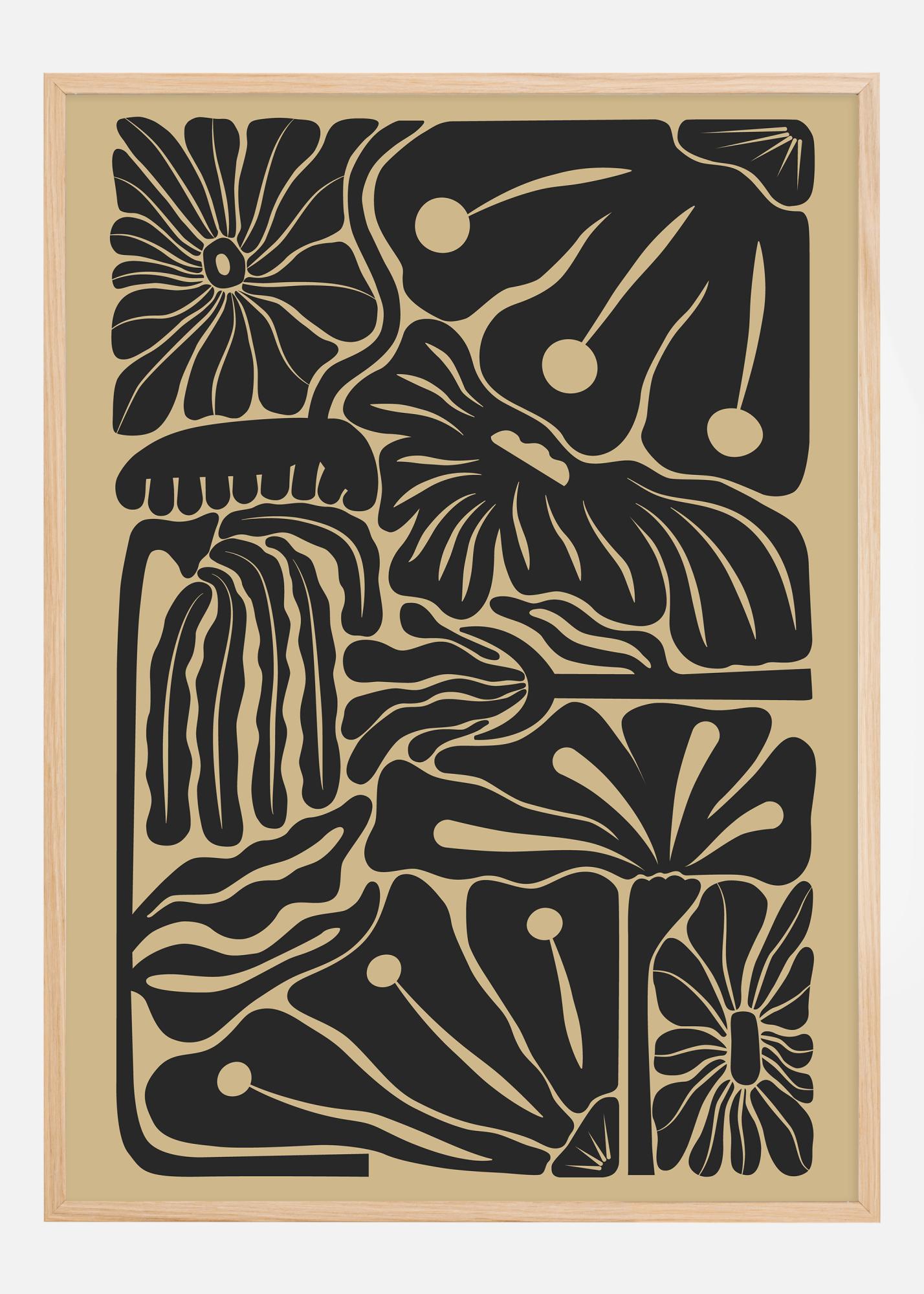 Tento elegantní plakát působí moderním a hladkým dojmem, ideální pro trendově uvědomělého designéra interiérů. Motiv zobrazuje sérii abstraktních tvarů a linek, které připomínají květiny a listy v organickém vzoru. Monochromatické provedení s odvážnými černými detaily na béžovém pozadí vytváří silný vizuální kontrast, který upoutá oko. Dílo, které se výborně hodí do minimalistického nebo skandinávského stylu interiéru a dodává pocit přírody, aniž by zabíralo příliš mnoho vizuálního prostoru.