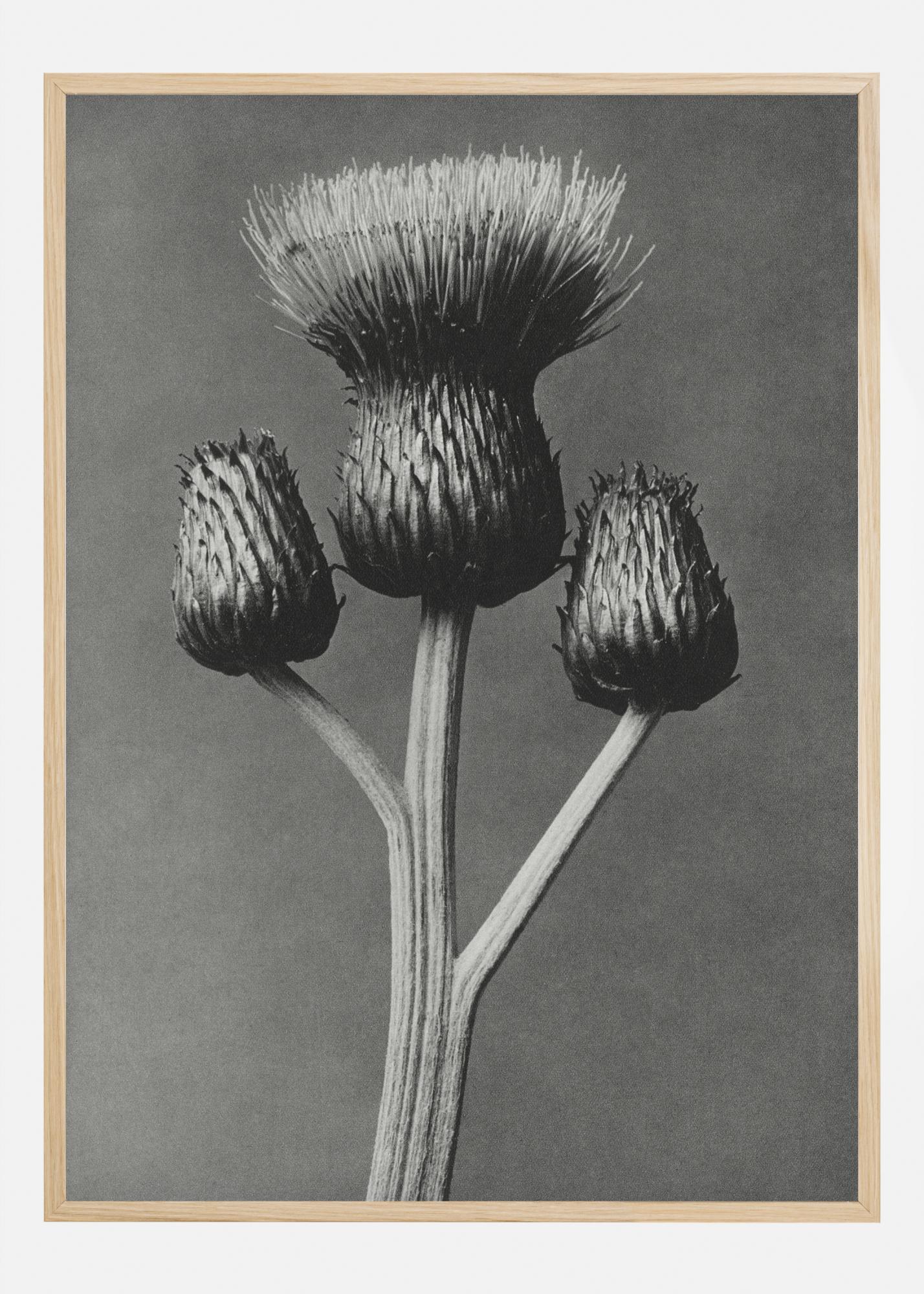 Působivý potisk s šedou květinou zvanou artyčok. Tento jednoduchý, ale úžasný potisk, zobrazený na šedém pozadí, vytváří pocit osamělosti. Díky přirozenému světlu, které jemně osvětluje květinu, je tento plakát ideální pro každého, kdo miluje květiny.